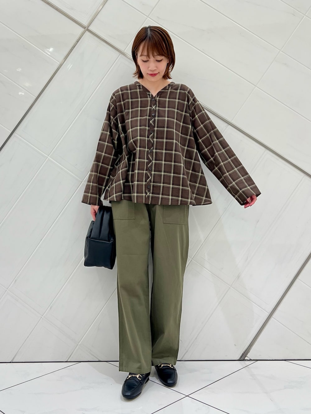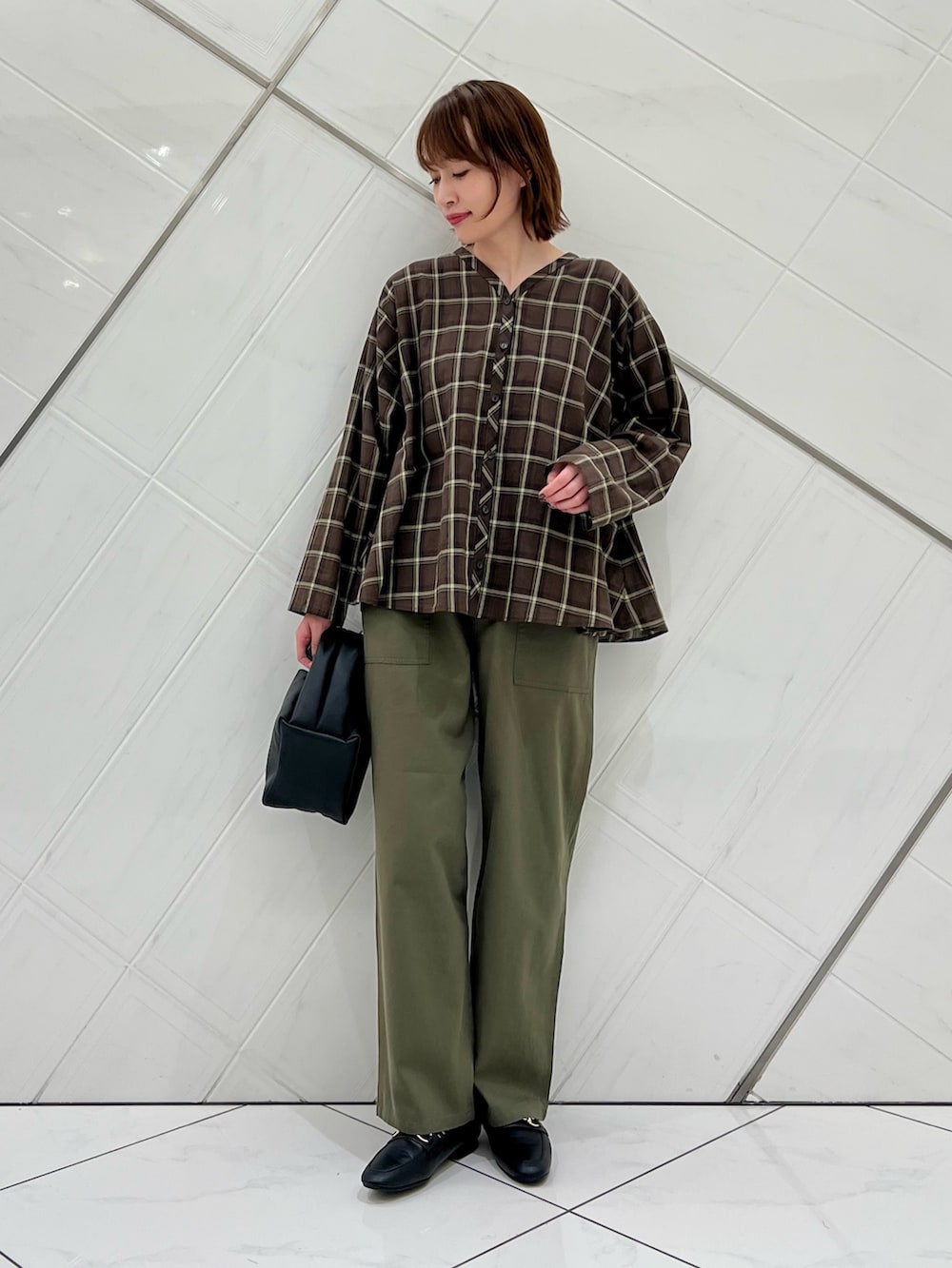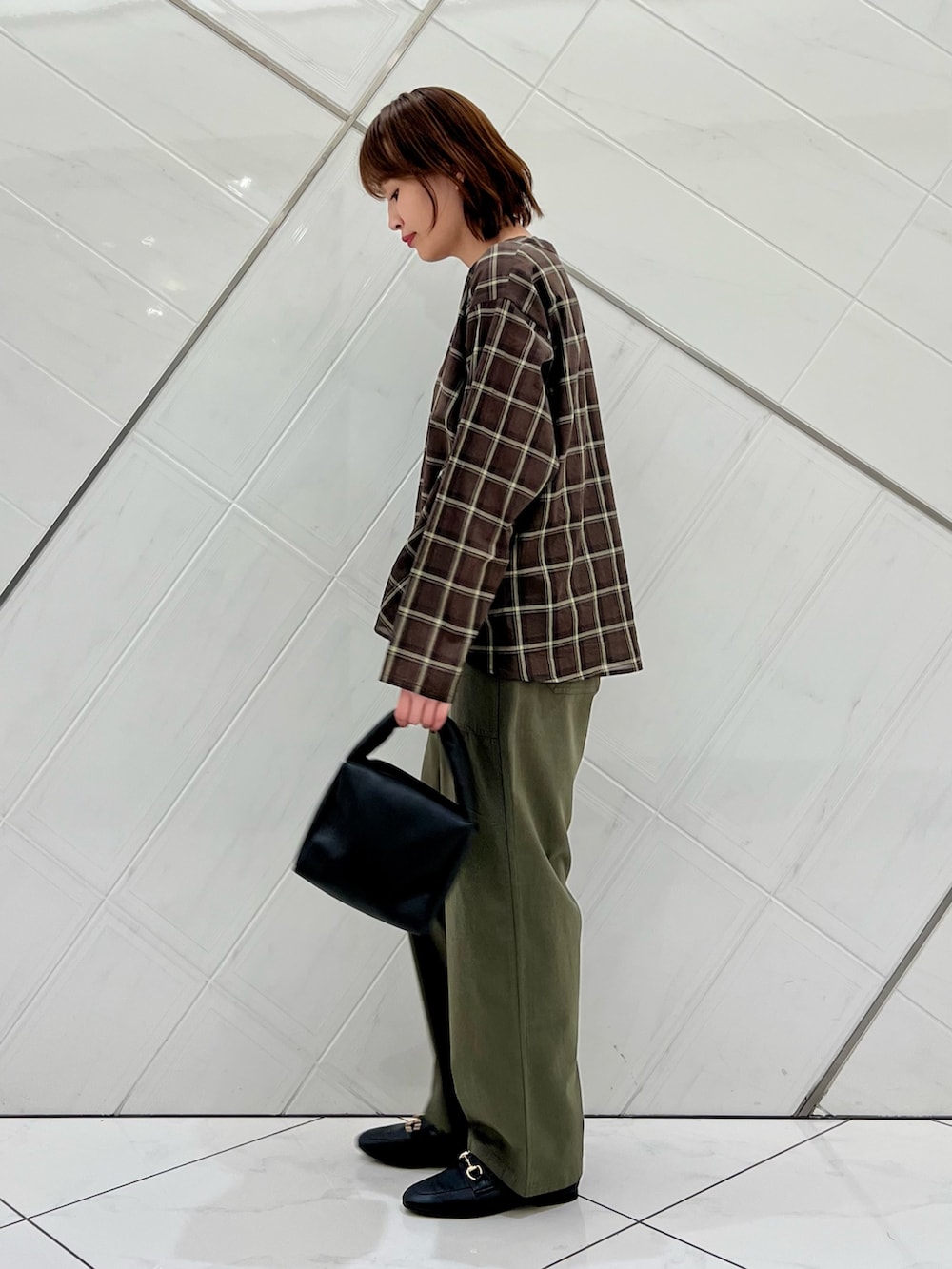 厚手すぎない生地が嬉しいパンツはワイドすぎない