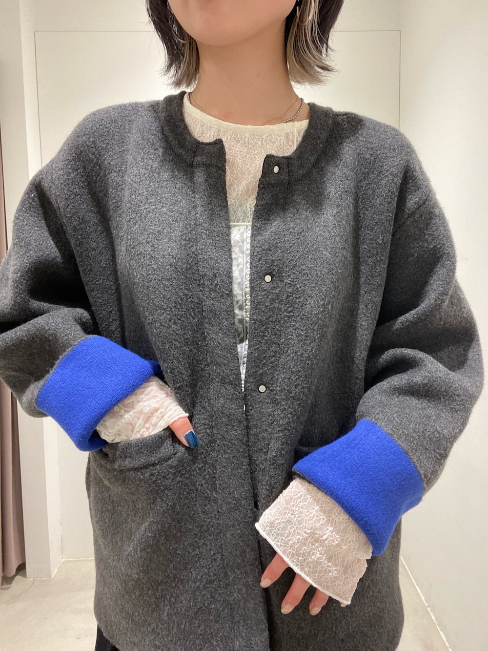 毎年大人気!バイカラーニットコートを着てみました。原色ブルーが可愛い、、🔵