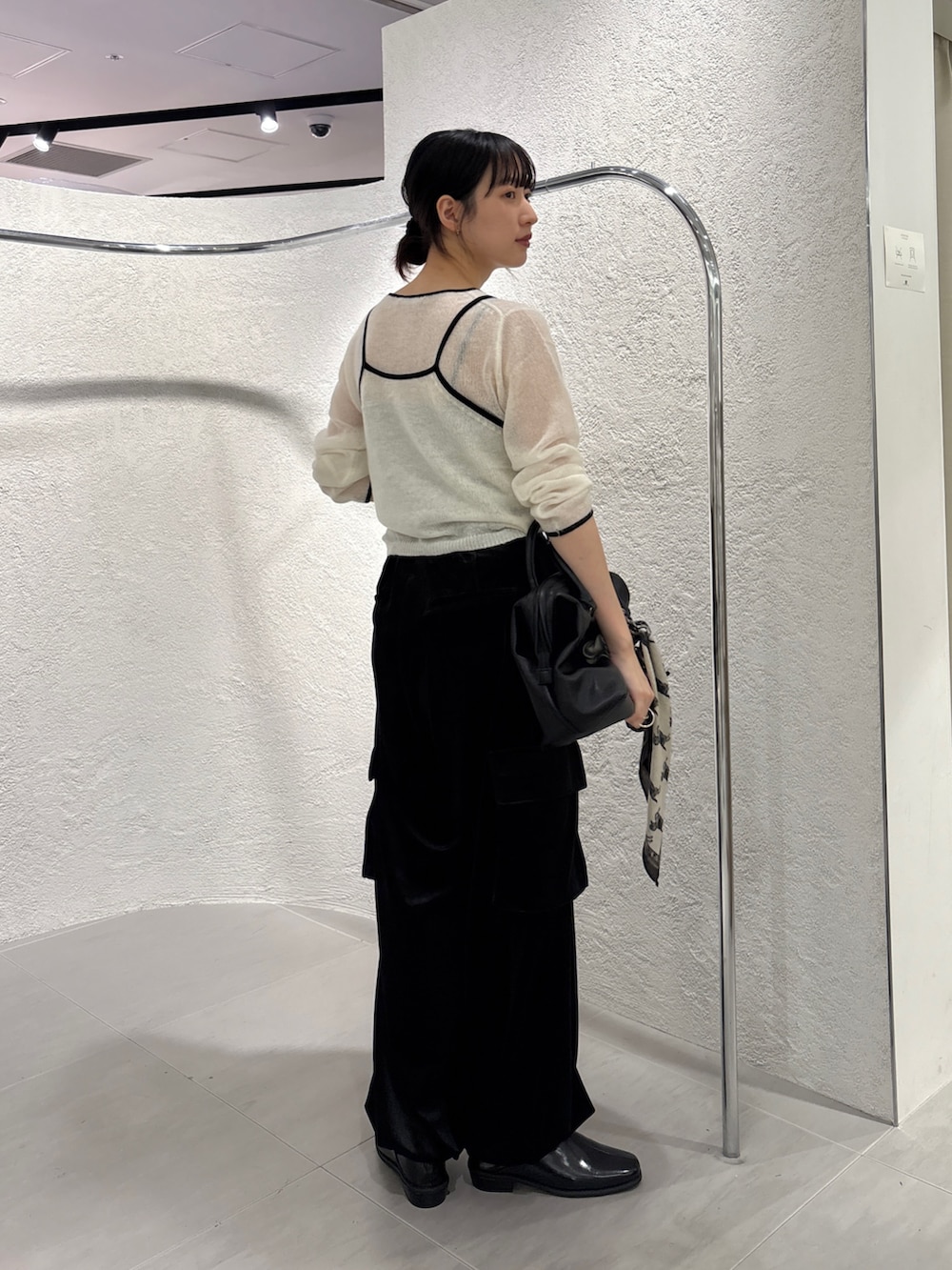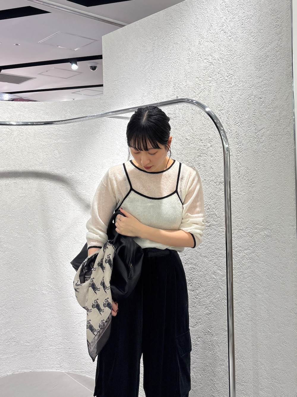トップスは透け感のあるニット素材で、キャミソールとセットになっています✨