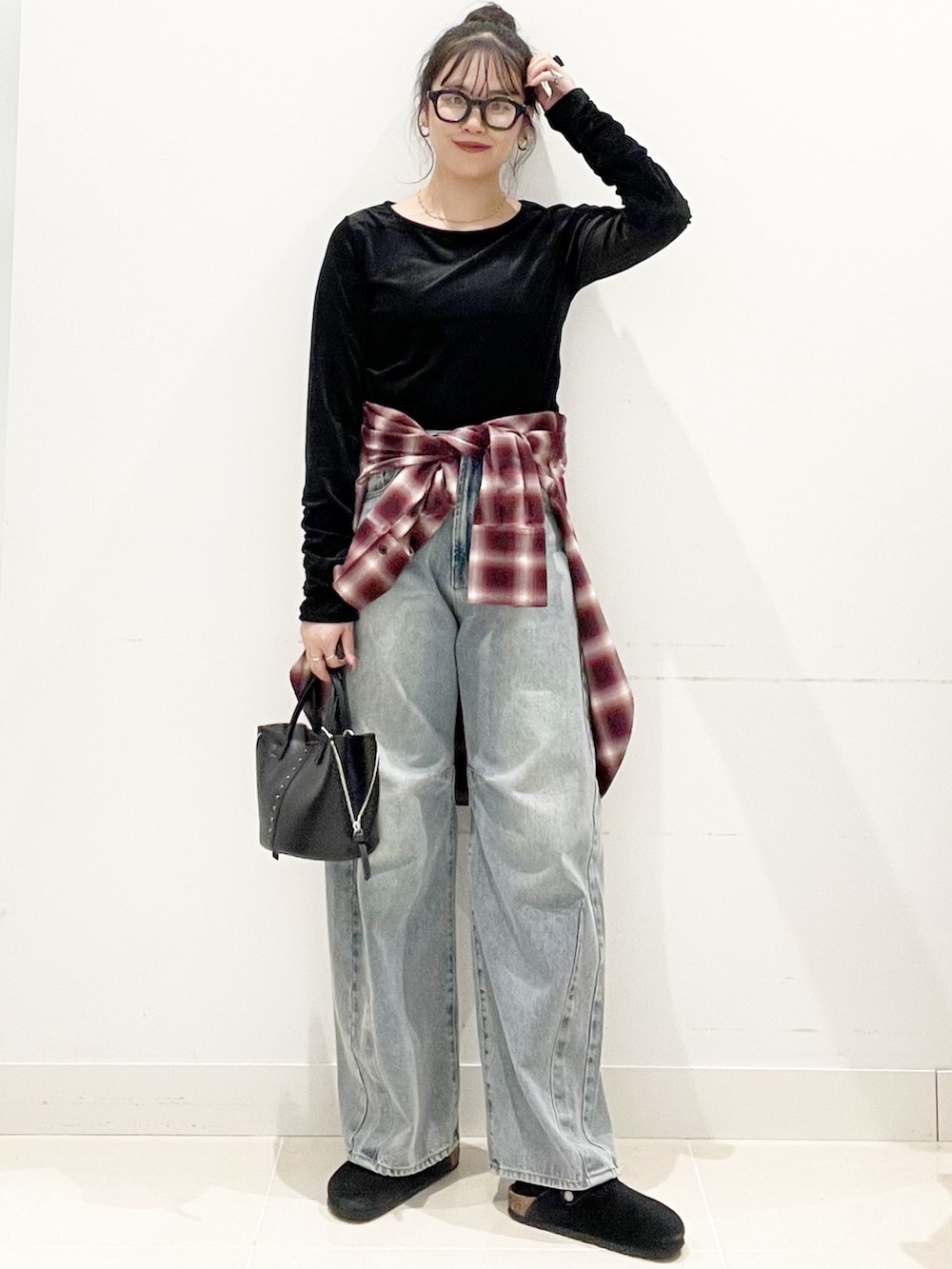 SENSE OF PLACEギャザースリーブベロアTシャツ