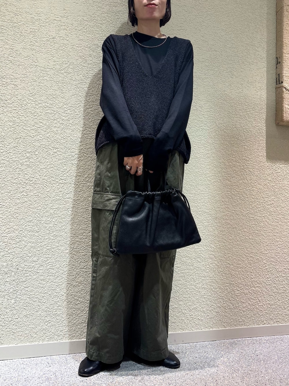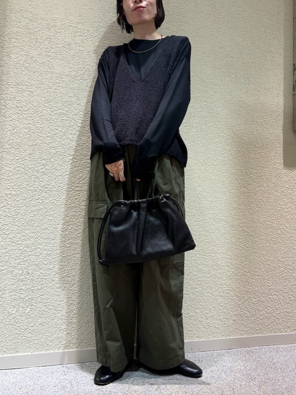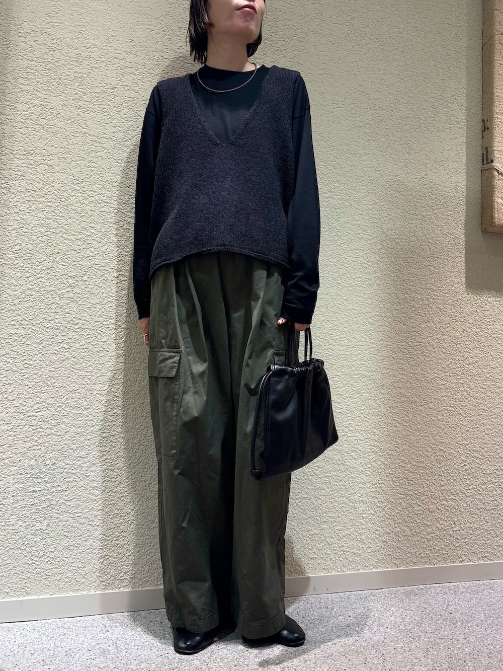 BLACKのカラーはインナーも単色のシンプルなものからボーダーなどの柄物ともバランス良くあわせて頂けるので使いやすいと思います◎