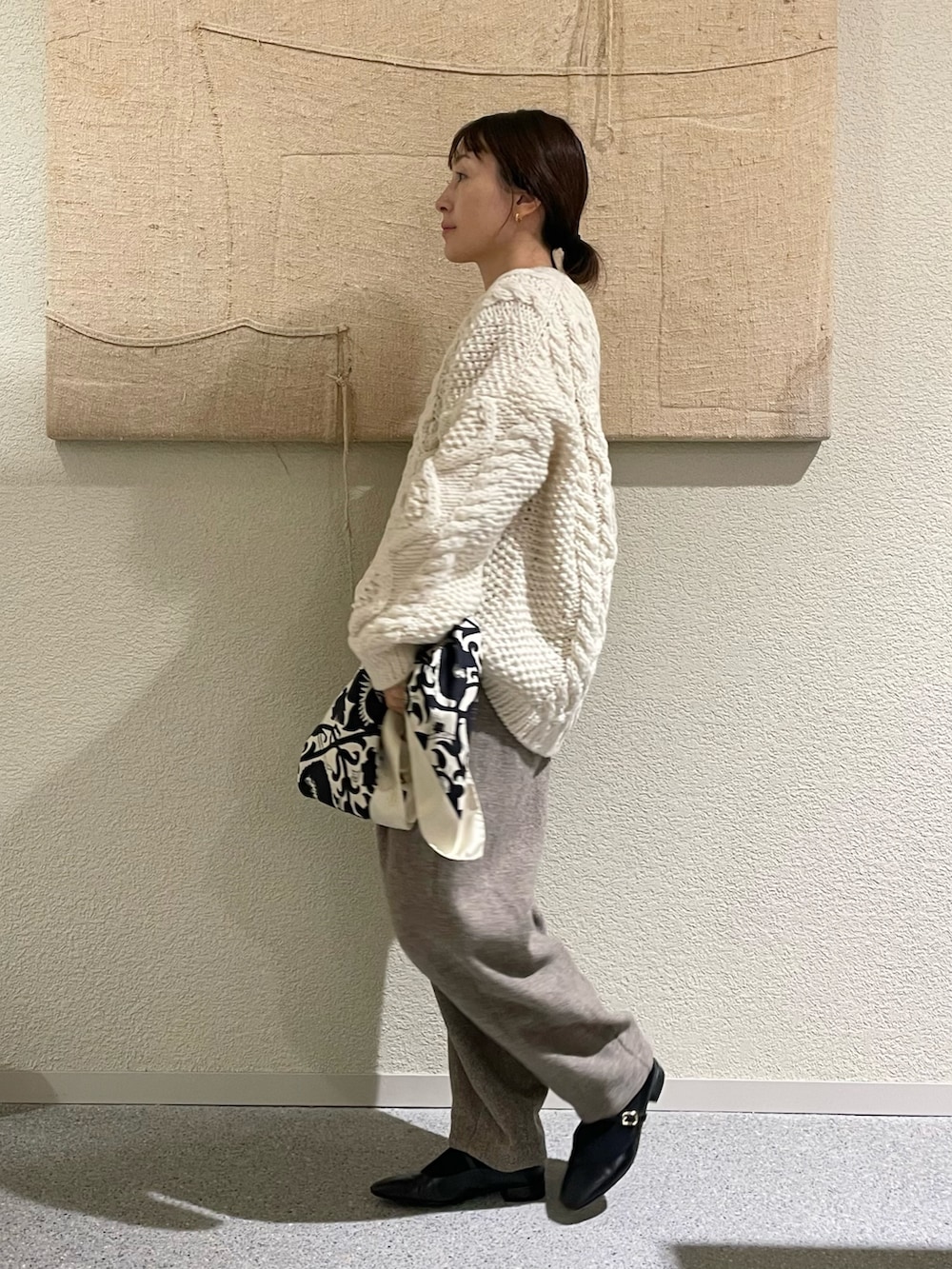 しっかり主役のニットなのでこれ一つでとっても雰囲気あるスタイリングに。