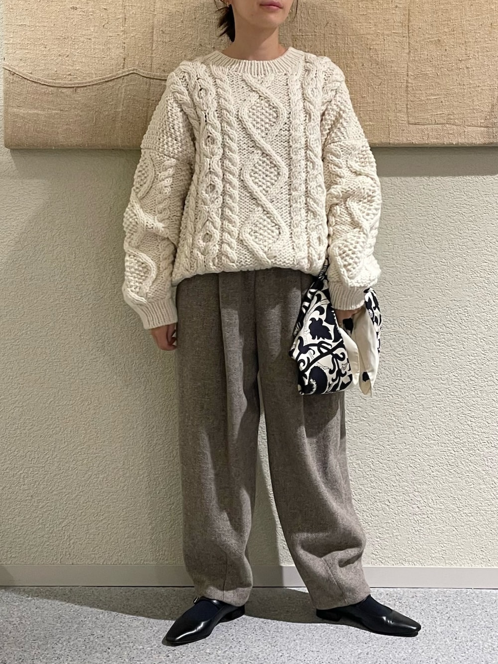 毎シーズン人気のペルーアランプルオーバーニット、ざっくり編みのアラン柄がたまらないナチュラルな雰囲気です。