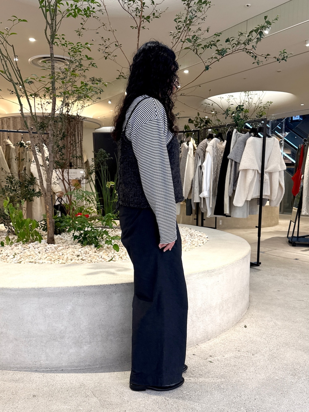 カットソーは着心地抜群のオススメアイテムで、薄手なのでレイヤードスタイリングもごわつかずに合わせれました。ボーダー柄でシンプルになりがちなモノトーンコーデのワンポイントに◎