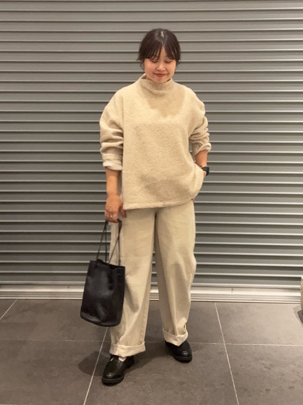 フォーク&スプーンのカーブパンツと秋冬ワントーンコーデにしてみました。