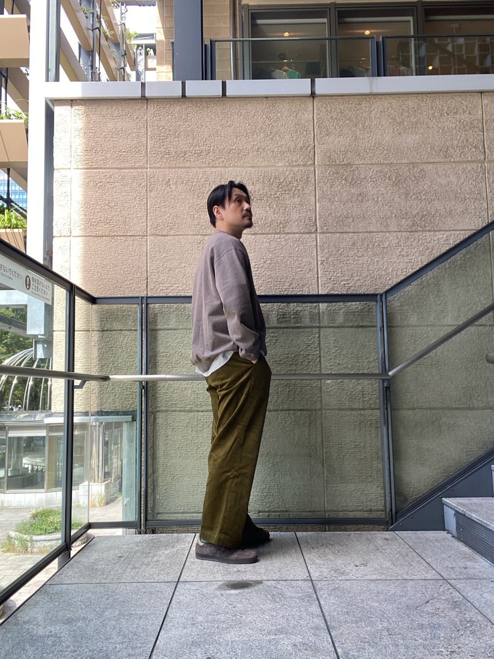 身幅にはゆとりを持たせ、裾のリブをしっかりめに調整することで、自然な丸みのあるシルエットに。