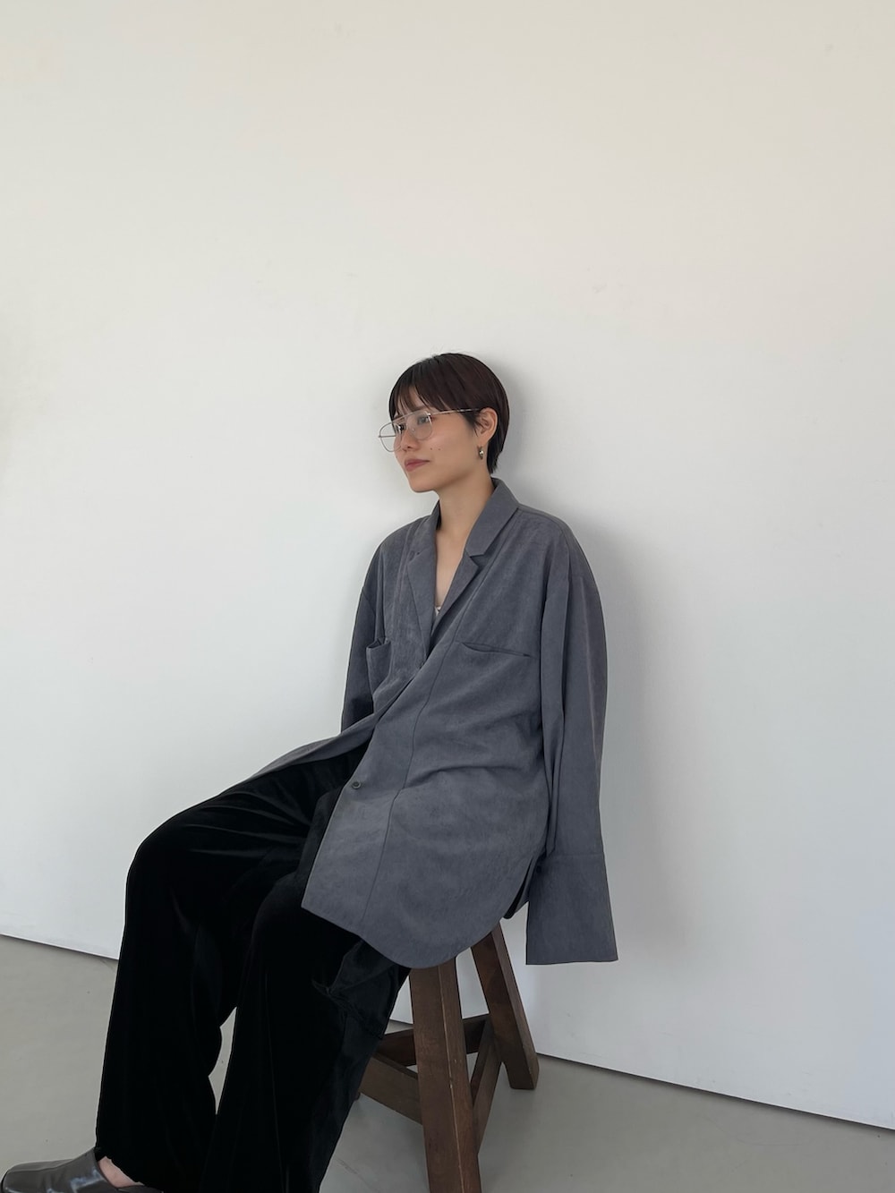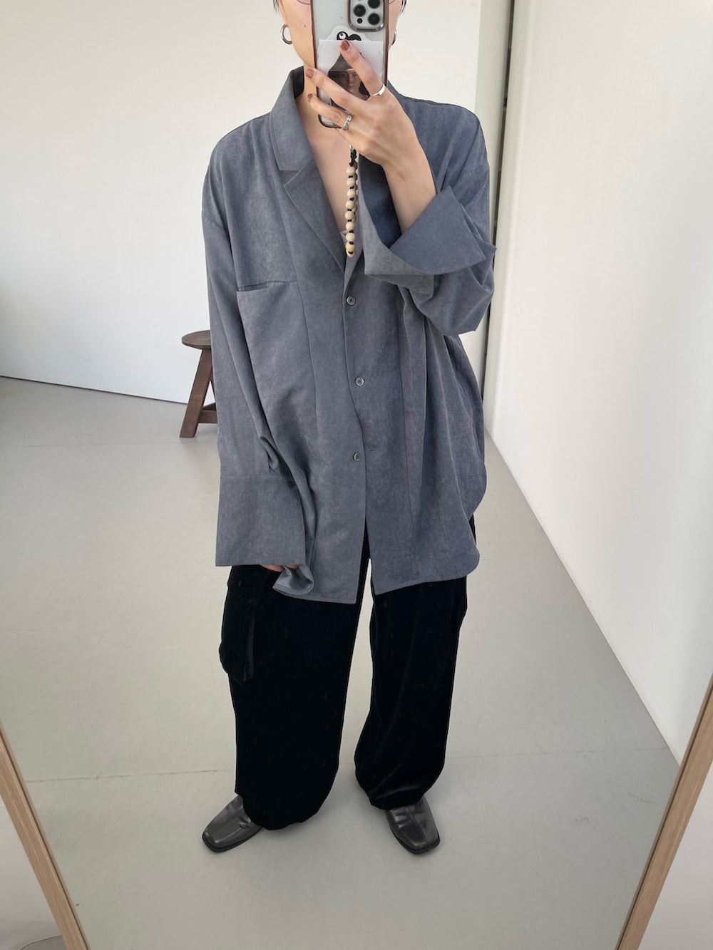 KBFらしいゆるっとしたBIGシャツ。ベロアのパンツと合わせて秋冬らしいコーデにしました!
