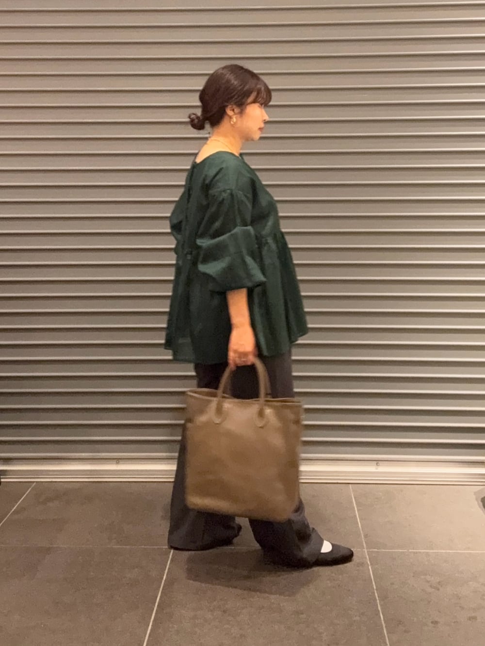 薄手で柔らかい素材なので、今すぐ着れる秋ブラウスです。