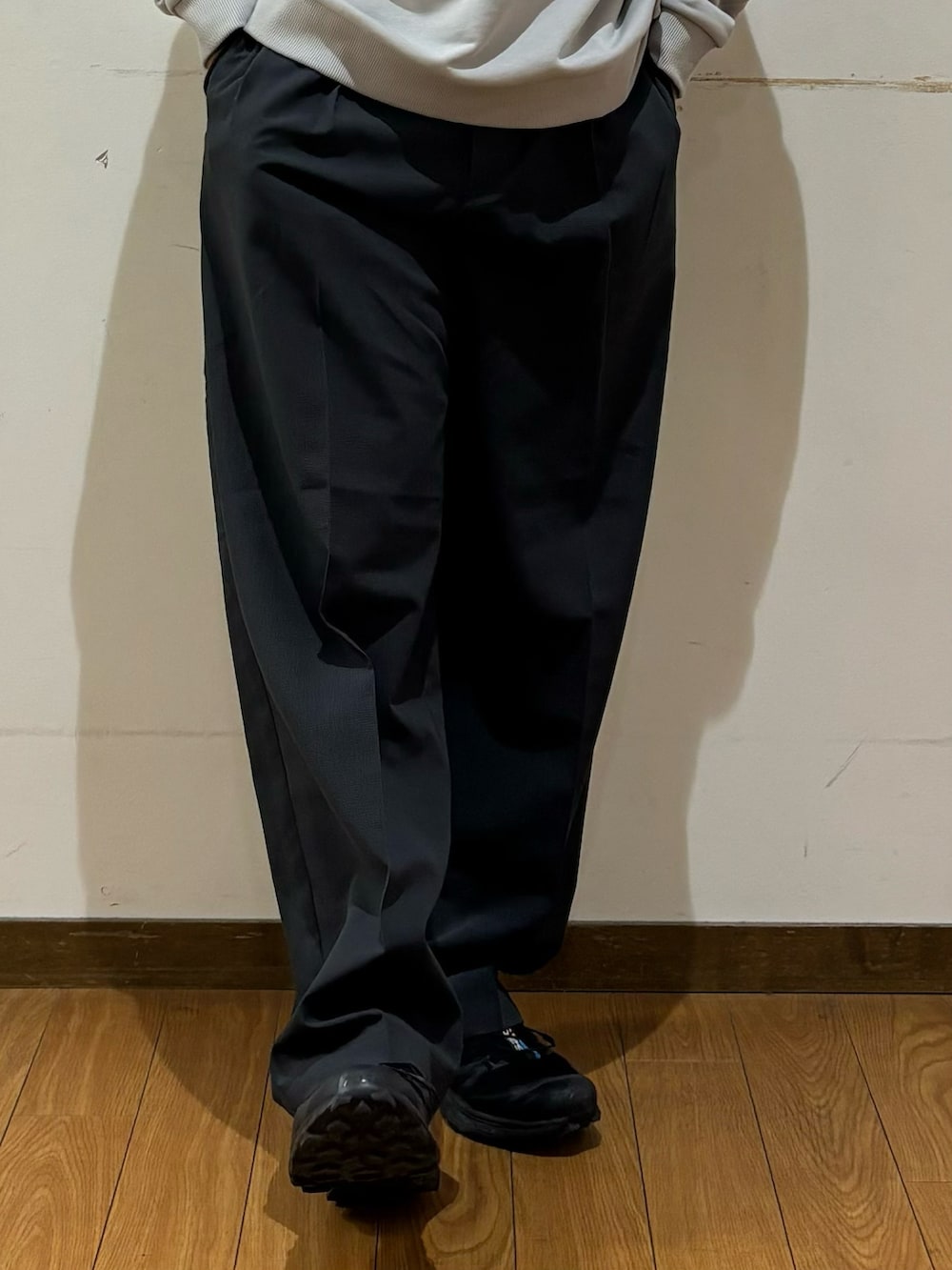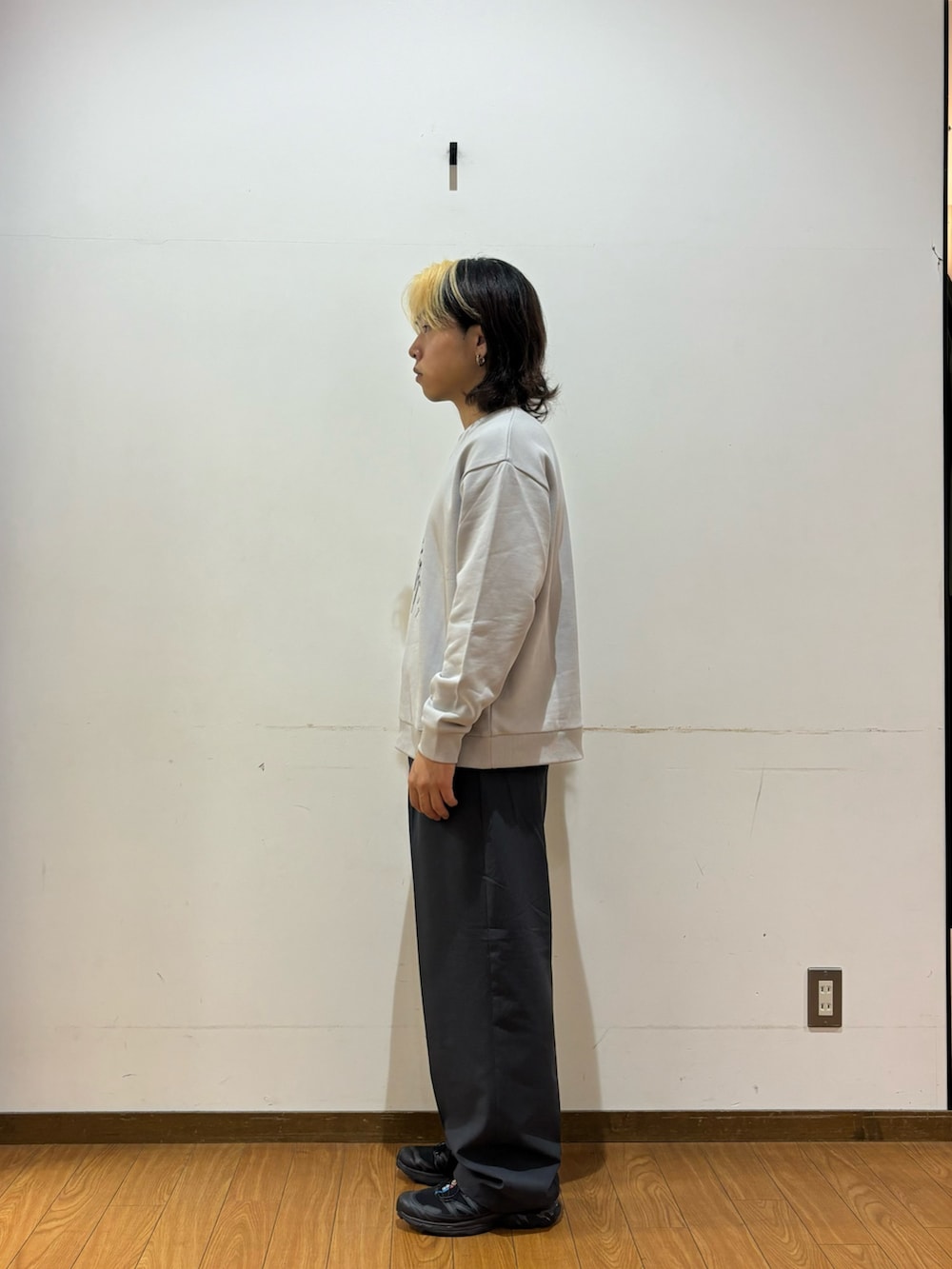 ボトムスはややワイドなシルエットとチェック柄が特徴的なパンツです!チェックの主張が強すぎないので幅広いコーデで使いやすいです!