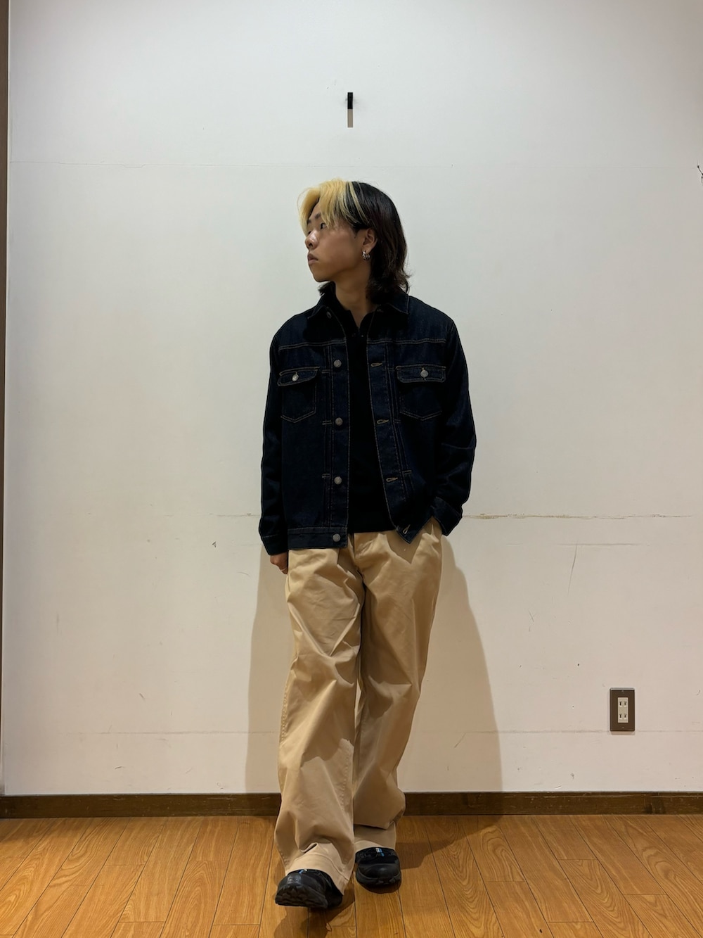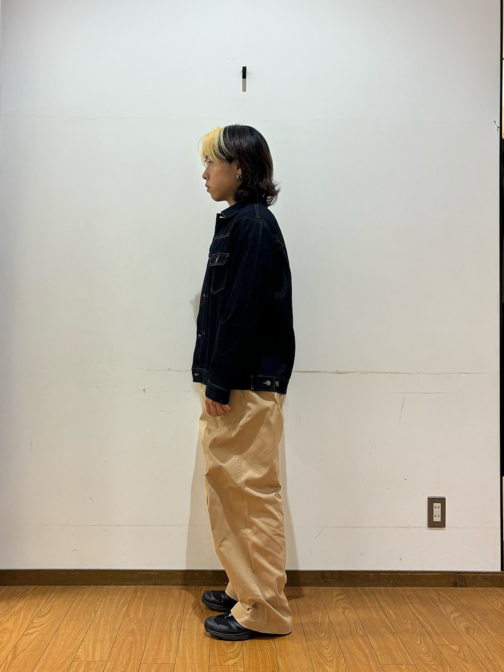 トップスはデニムのジャケットですが厚みや硬さをあまり感じずとても着やすいです!軽い着心地なのでシャツやニットなど重ね着がしやすいです!