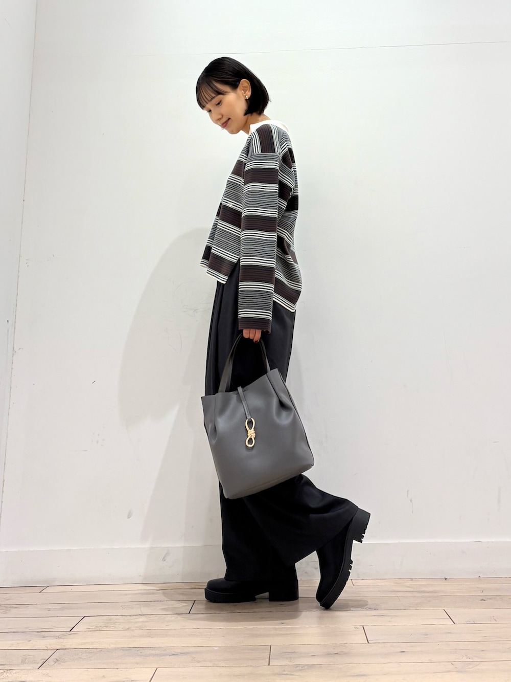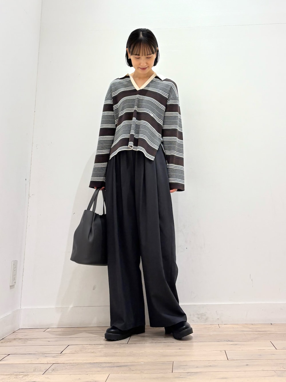丈は短めなのでワイドパンツやスカートとの相性も良いですよ^ ^