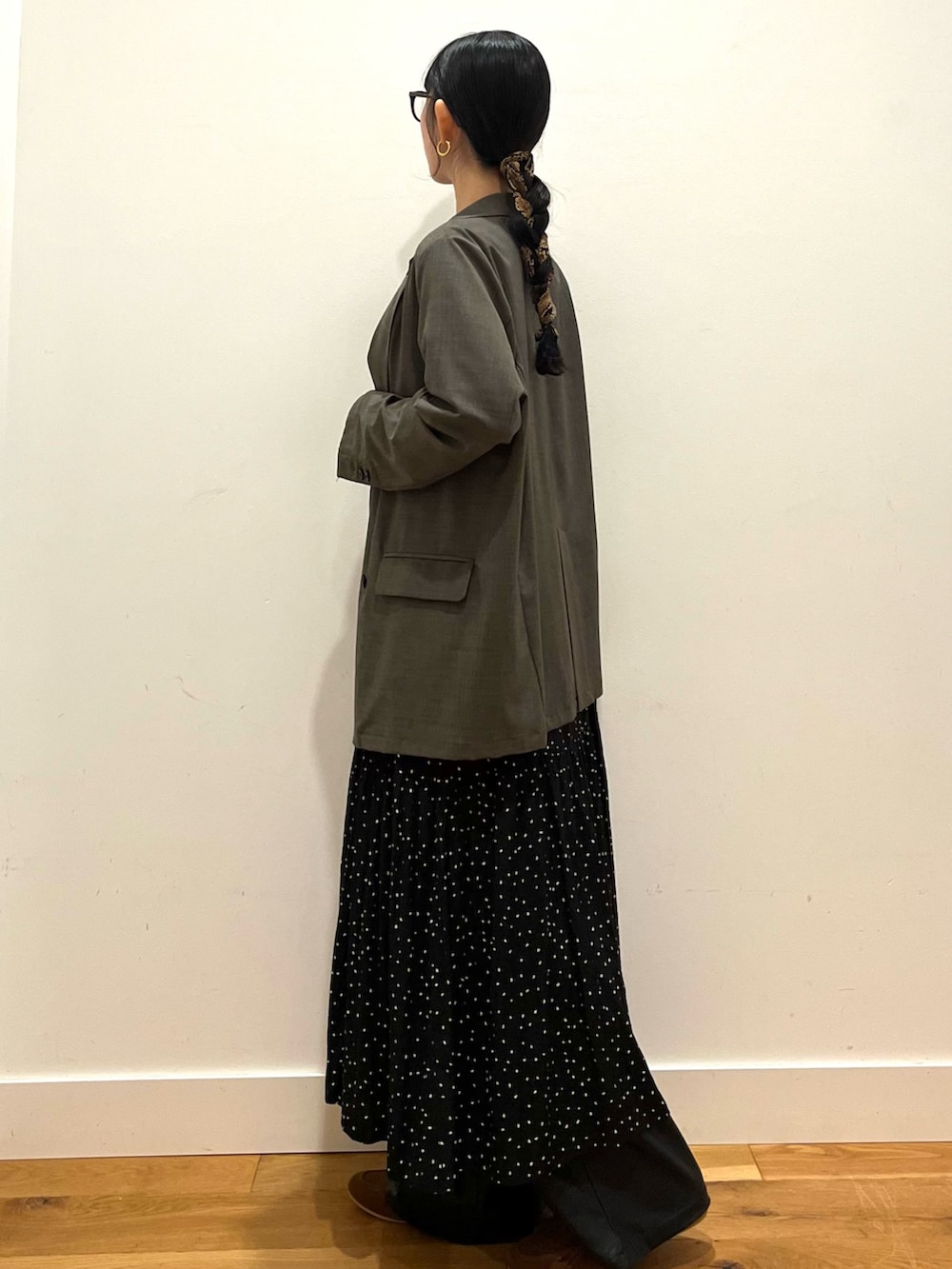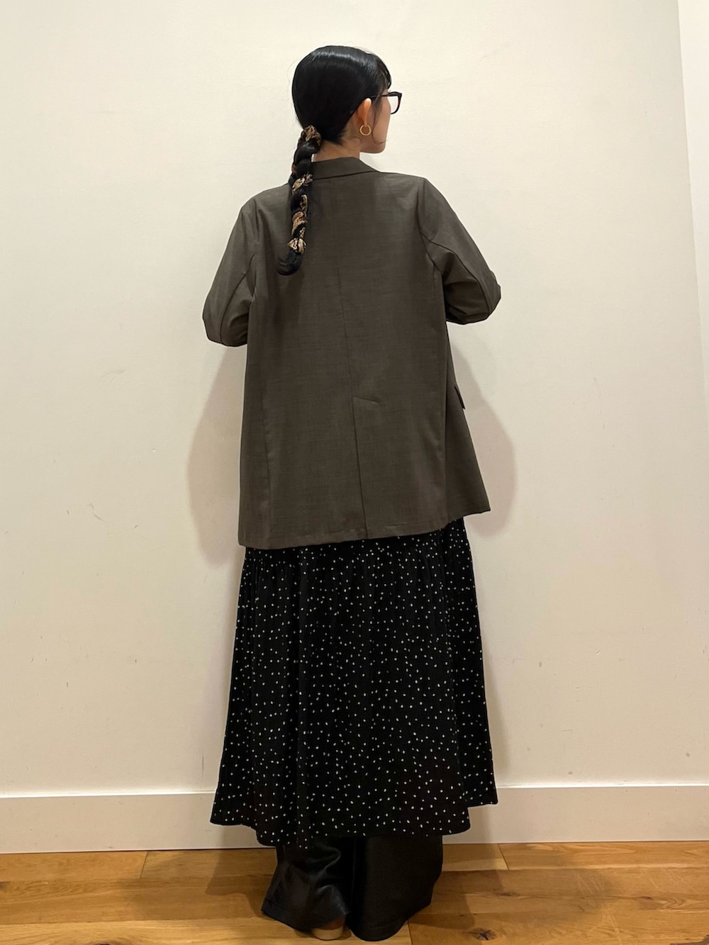 秋口にはジャケットやロングカーディガンを羽織ったり、冬にはニットを重ねてスカートのように着るのも可愛い✨