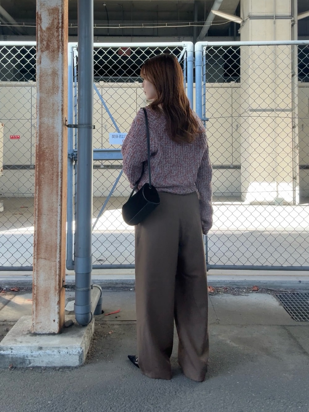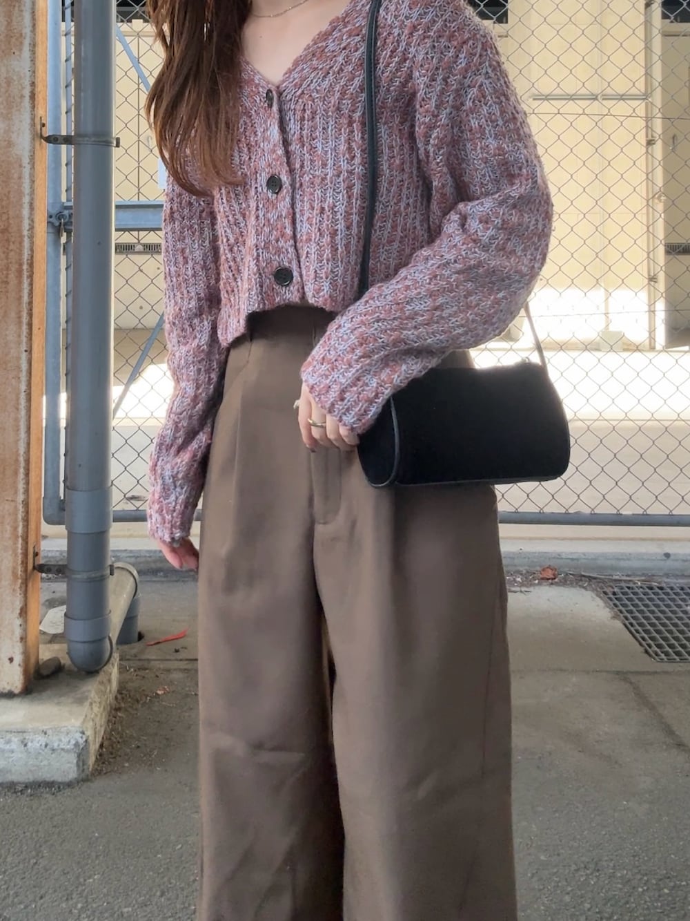 カーディガンは糸のMIX具合が可愛すぎて普段色モノを着ませんが、このカラーを選びました✨丈も短めなので、スタイルアップ効果があります!