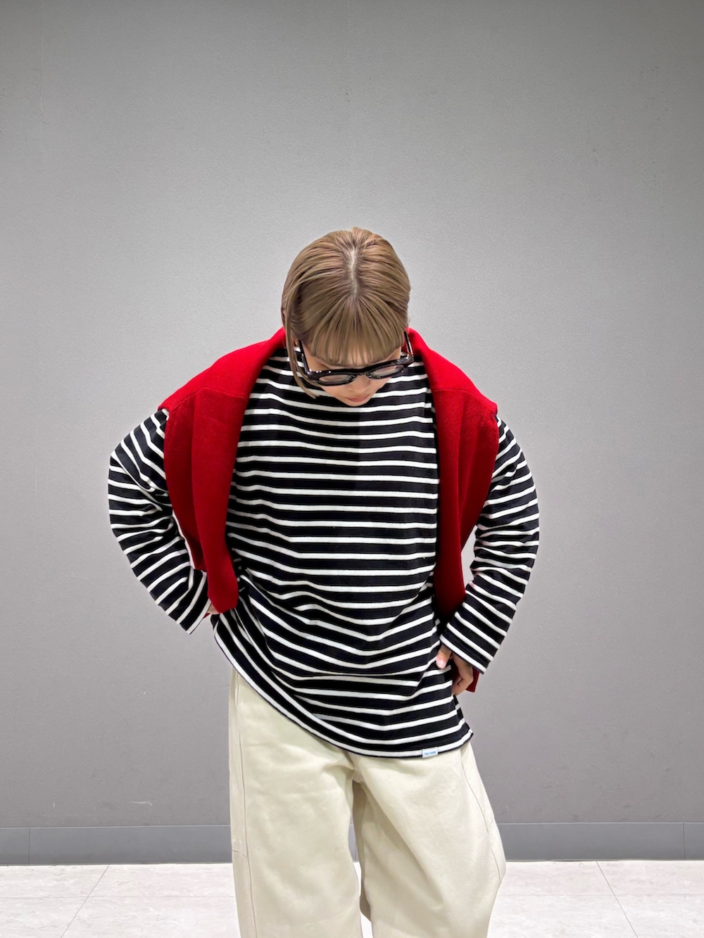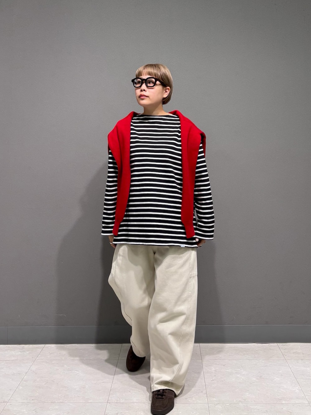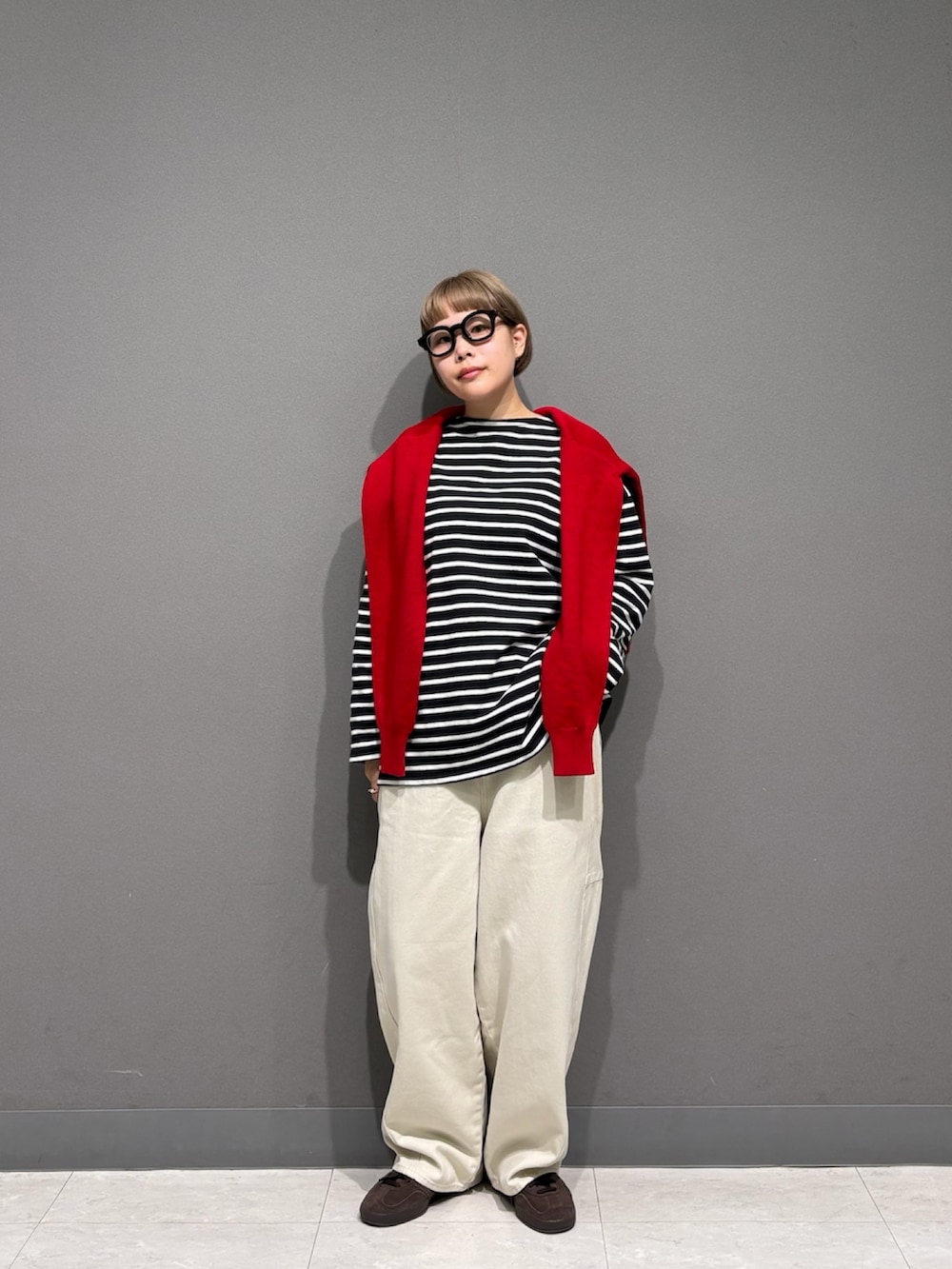 ボーダーと赤をアクセントに。