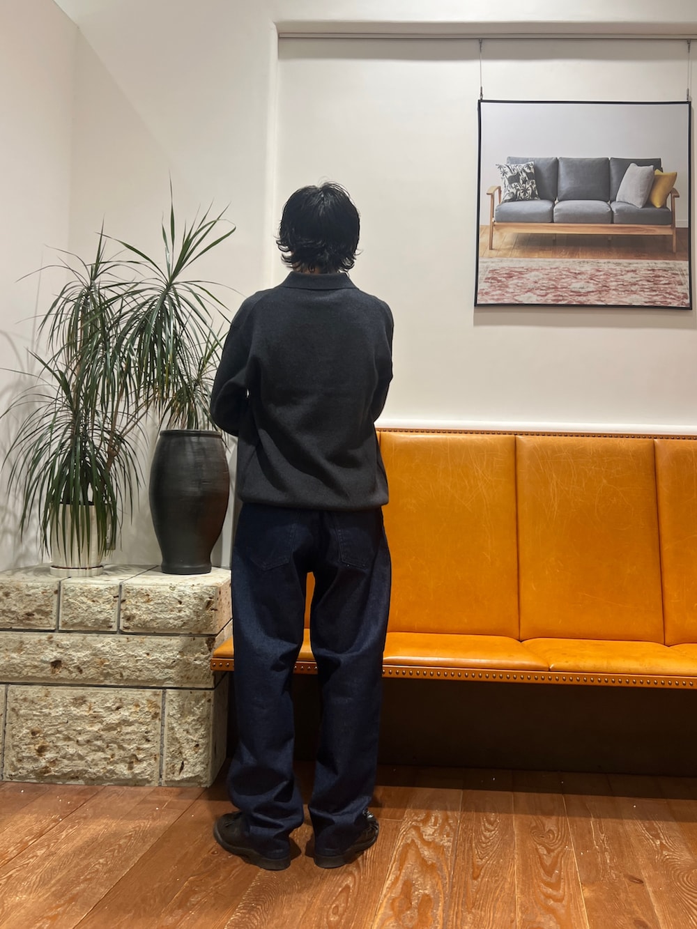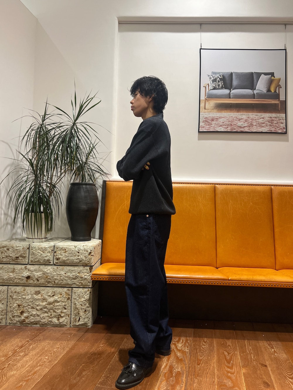 ミラノリブ編みになっておりハリ感があるのでワンウォッシュのデニムとローファーで全体的に綺麗めなコーデに仕上がっています