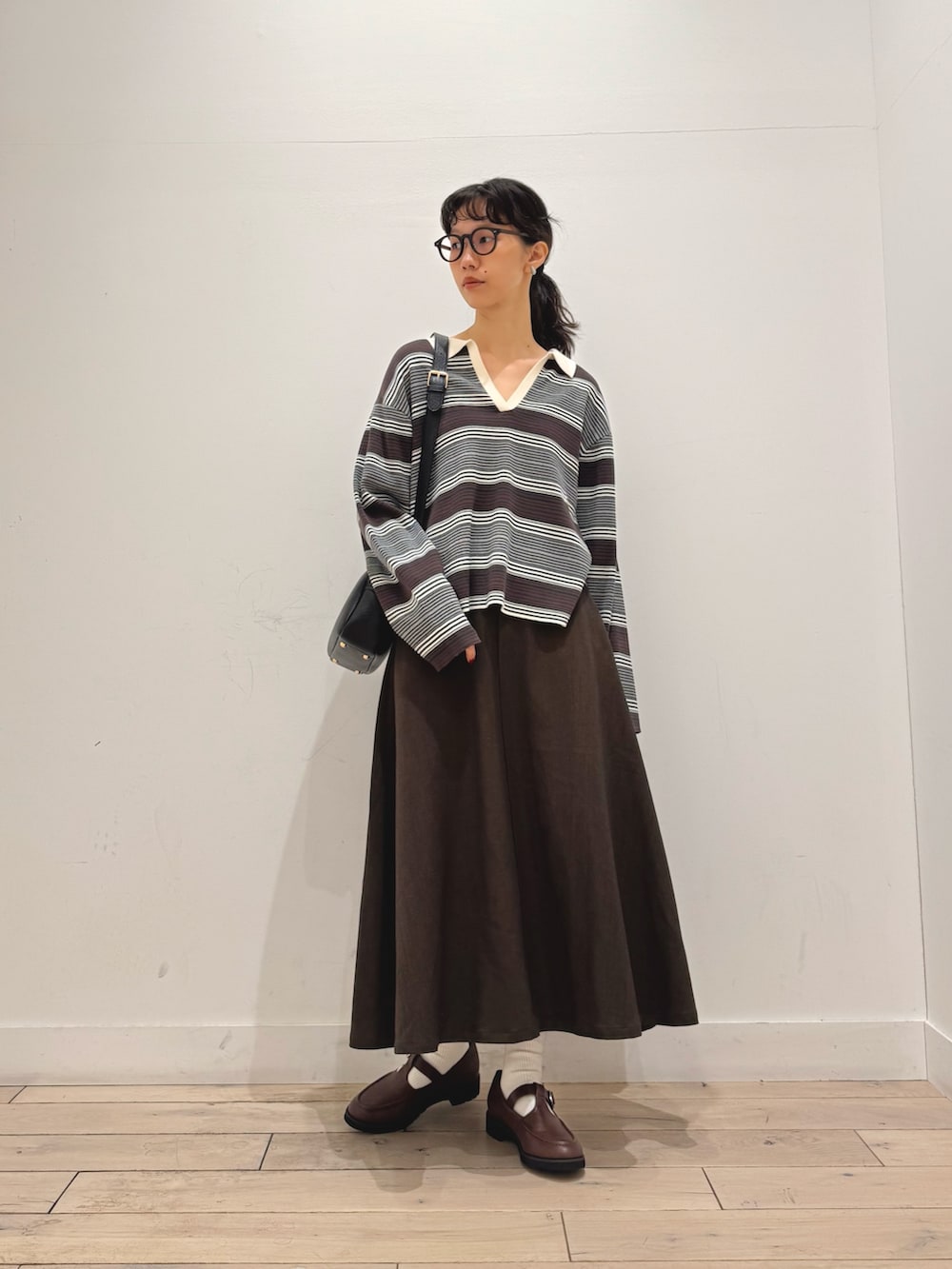 ラガーシャツはよく見ますがラガーニット、かわいくないですか??身幅がありゆったりしつつ、首元が開いてるのでスッキリ感もあります◎