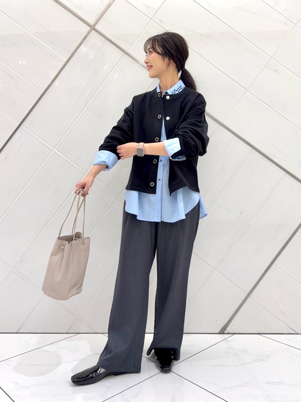 ボトムスを選ばないので着回しが効き、ショート丈なのでバランスも取りやすいです。