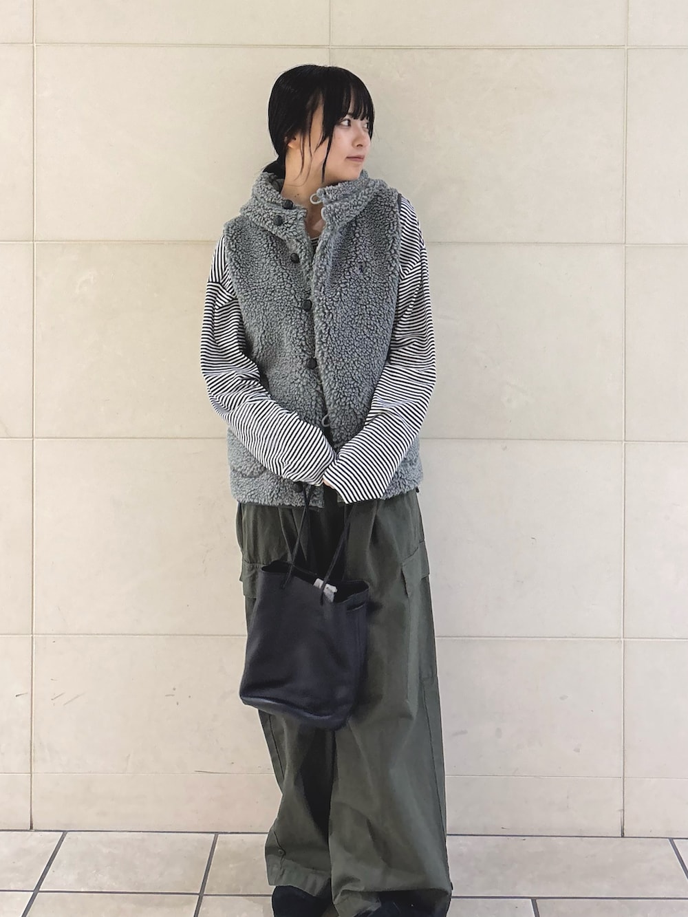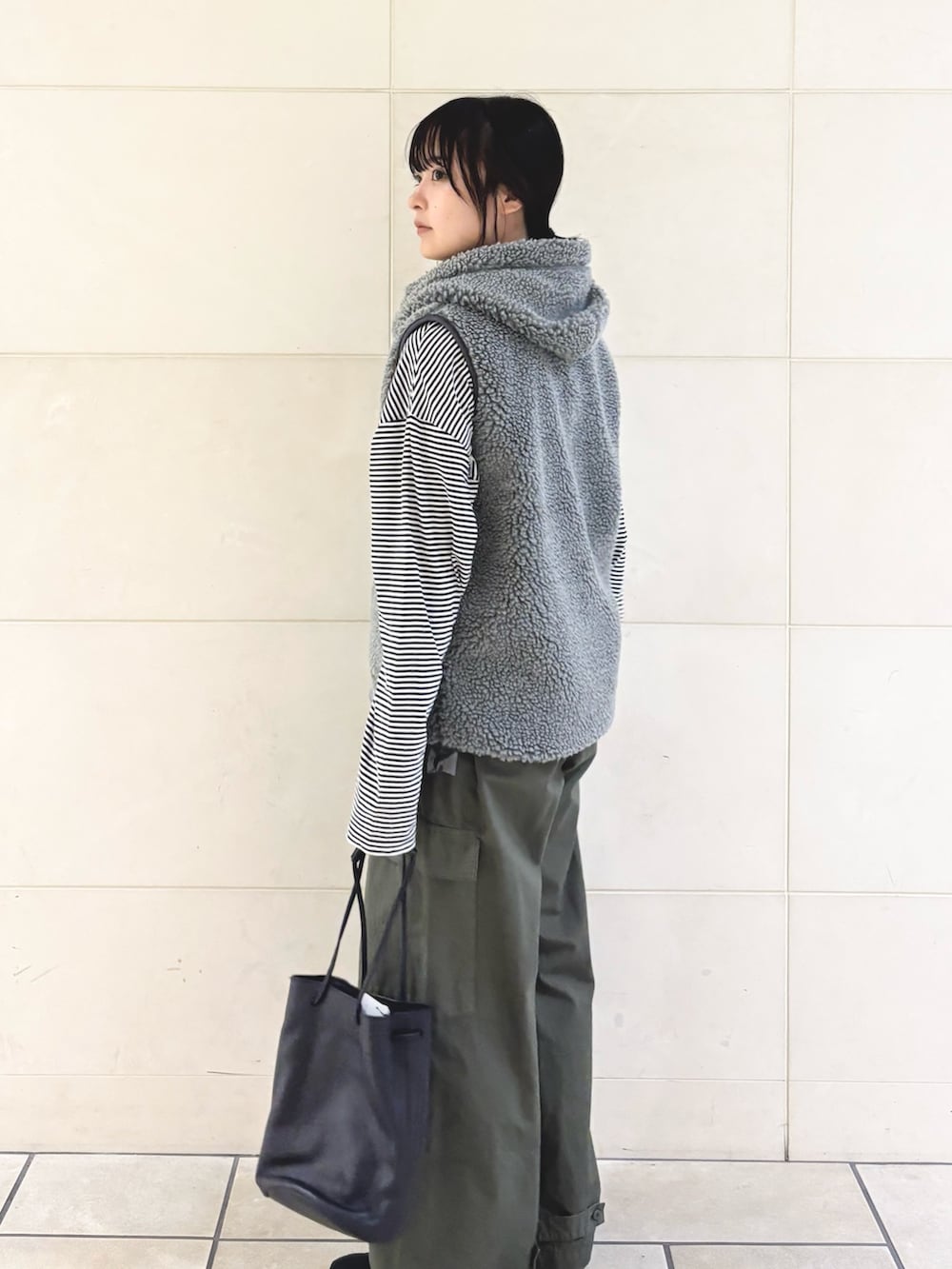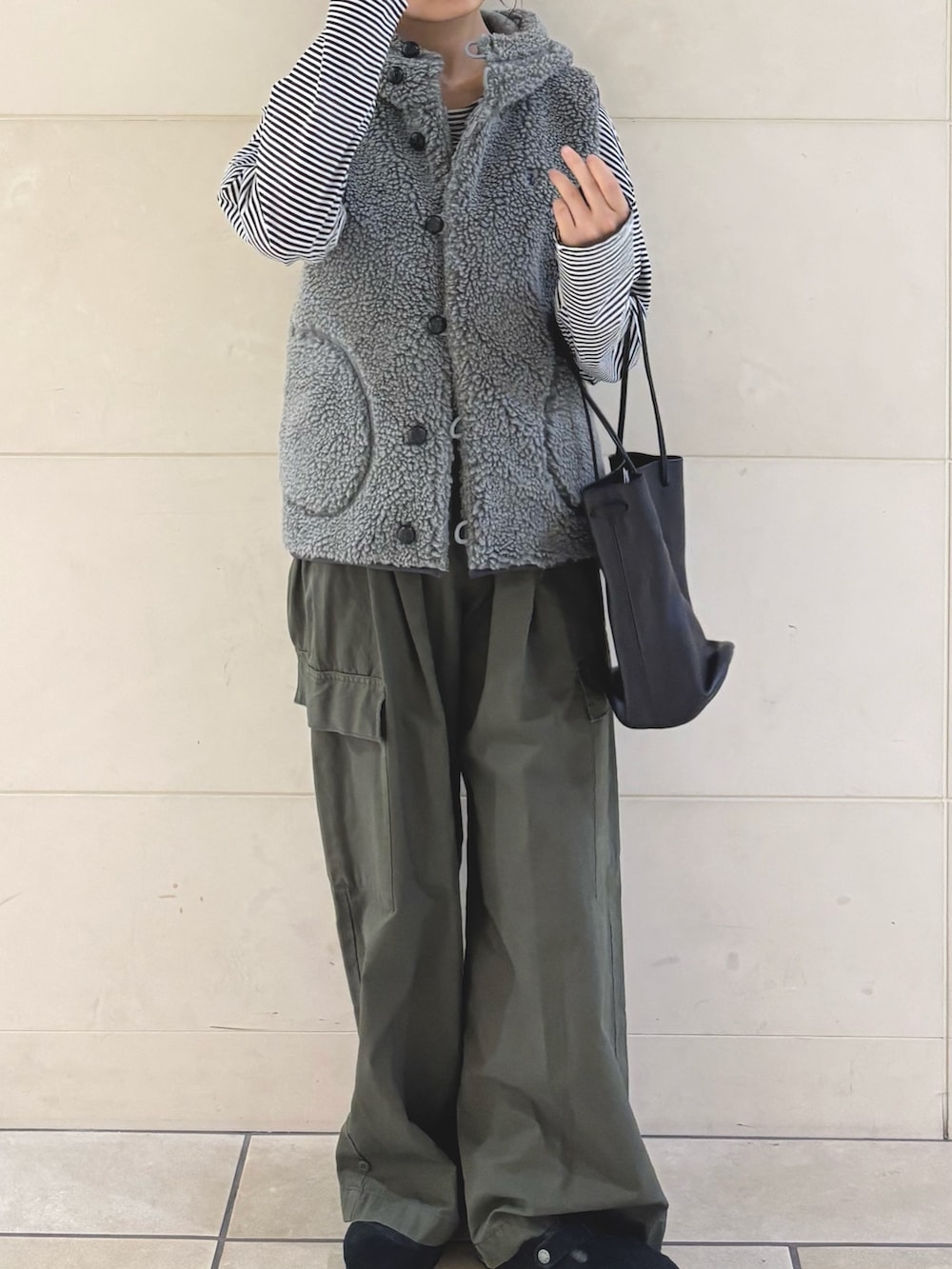 今回はアウトドアなシーンをイメージしてカーキアイテムとボーダーで合わせてみました❣️