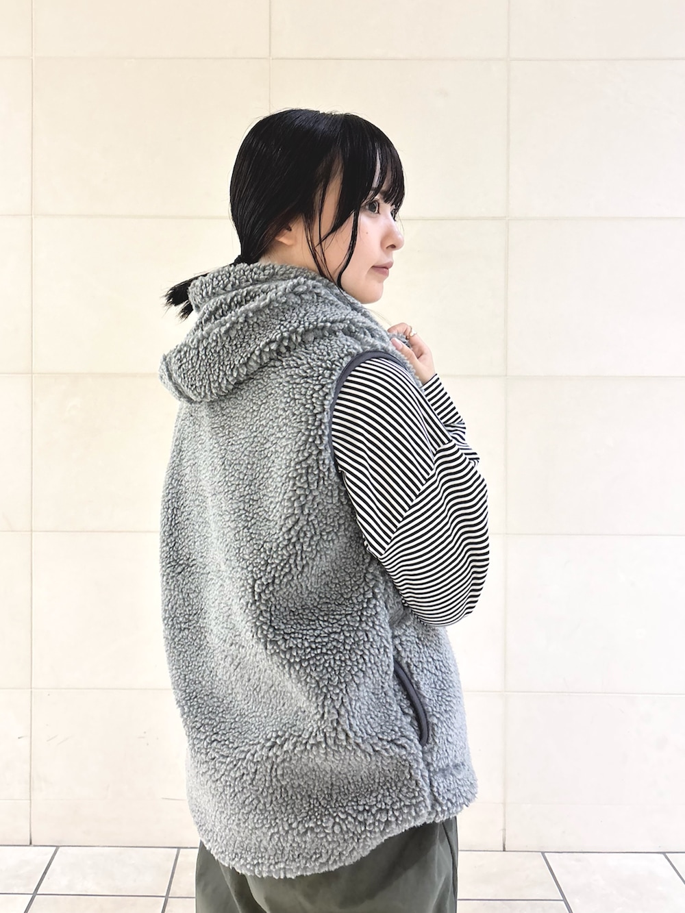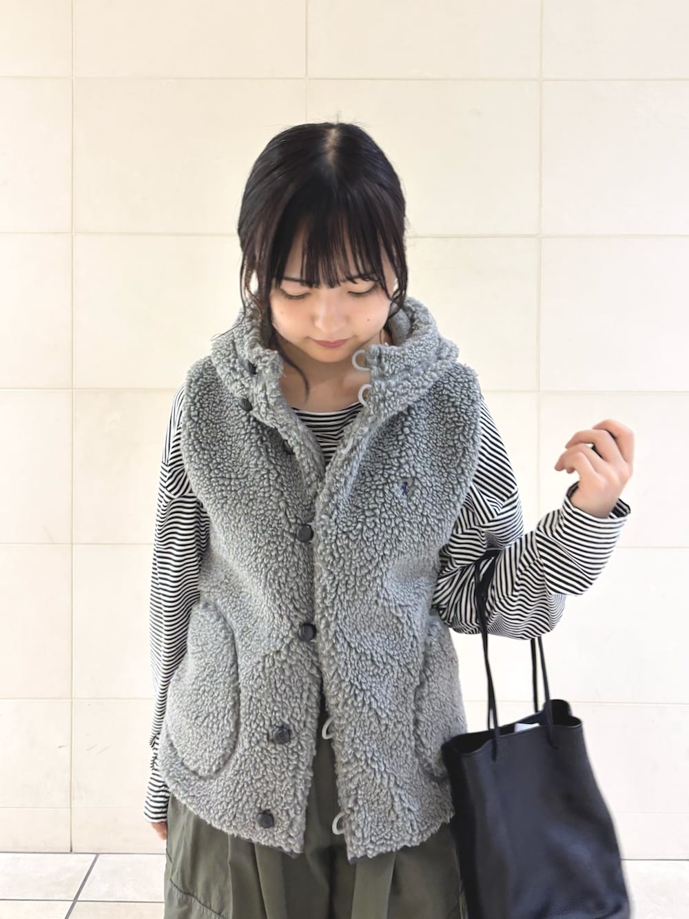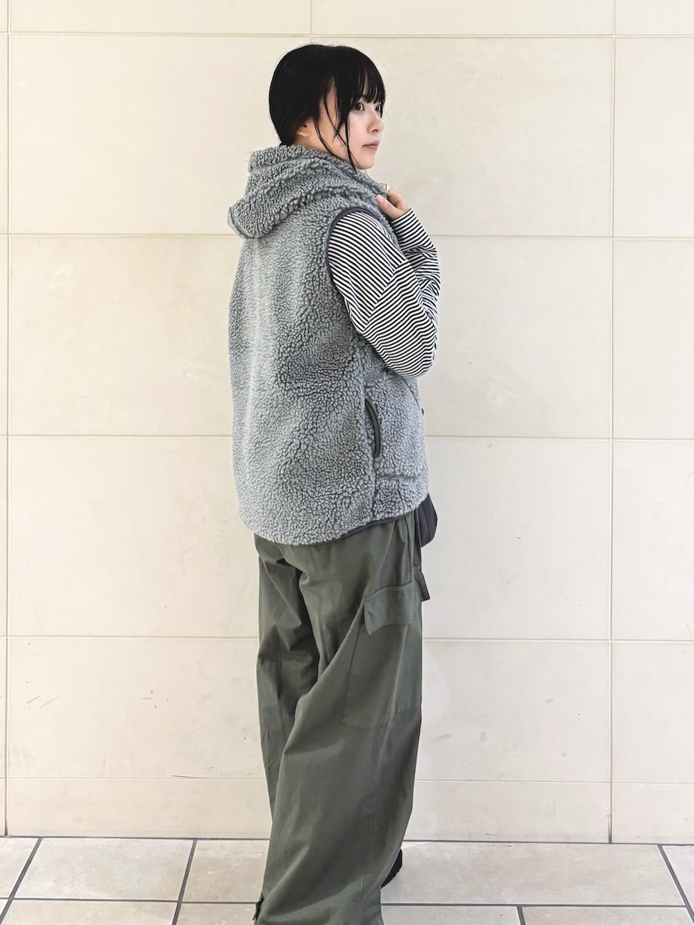 今回はアウトドアなシーンをイメージしてカーキアイテムとボーダーで合わせてみました❣️