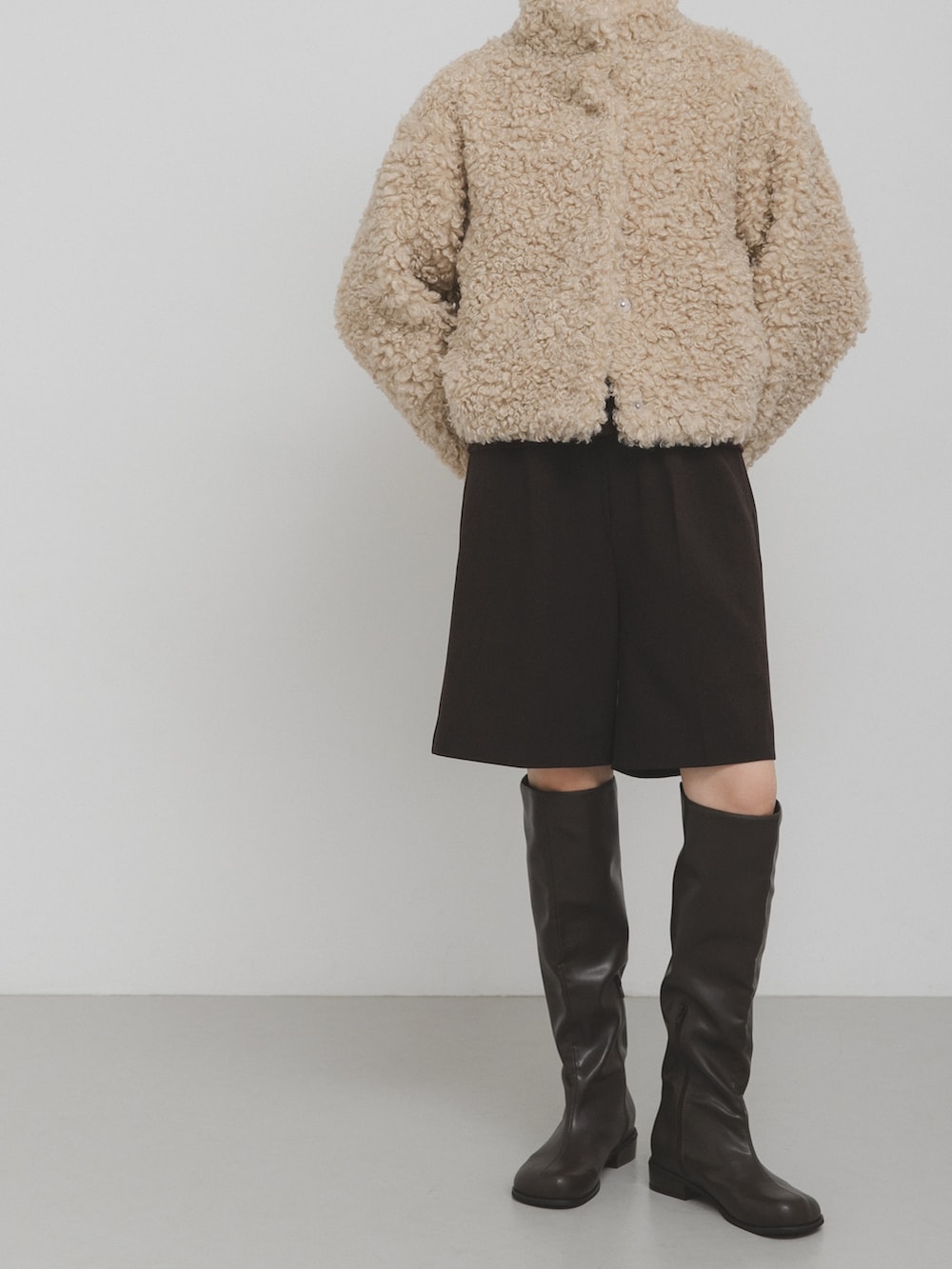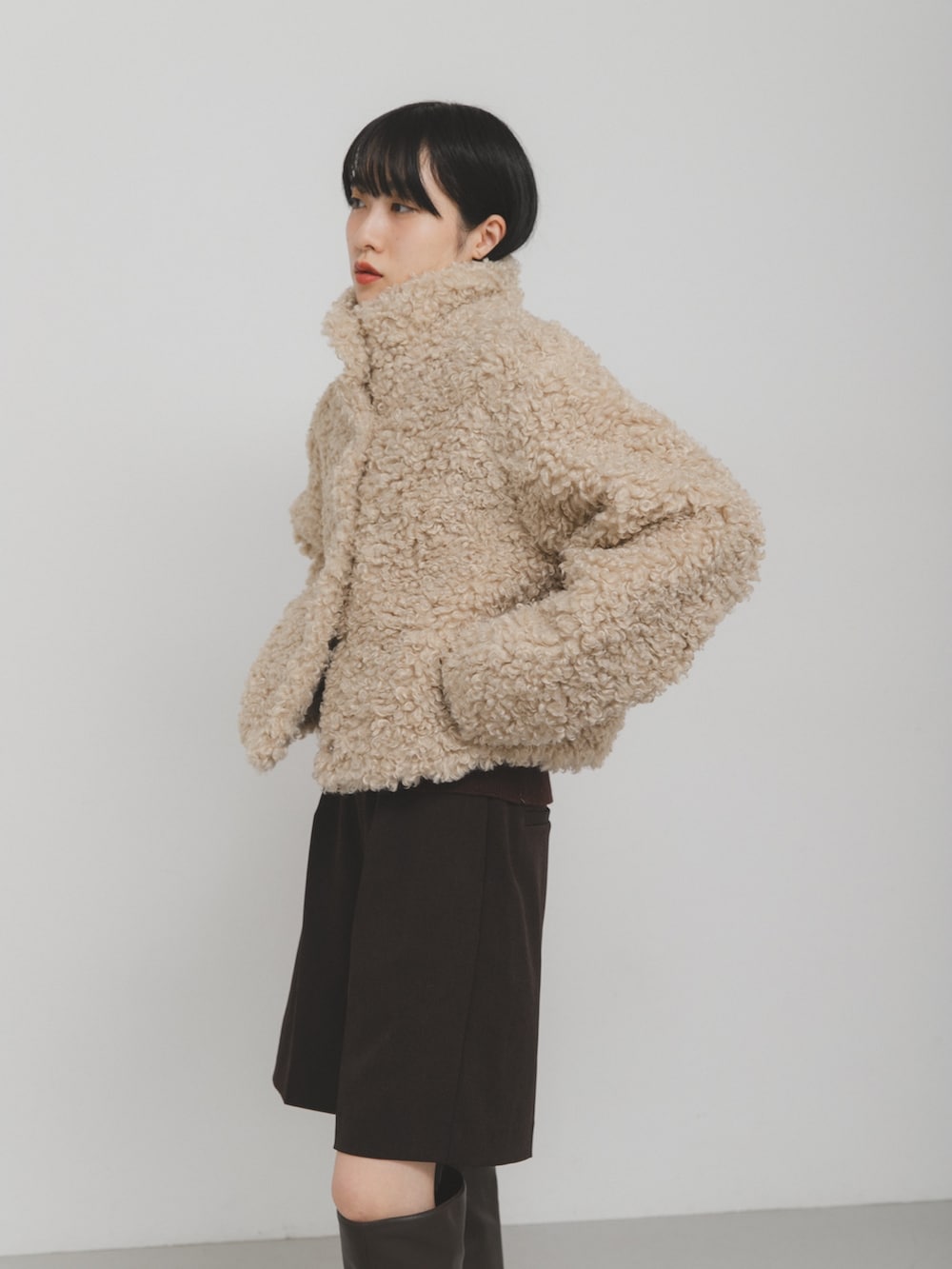 もこもこ感が可愛いアウターは、ショート丈なので大きく見えすぎず、着回ししやすいアイテムです!
