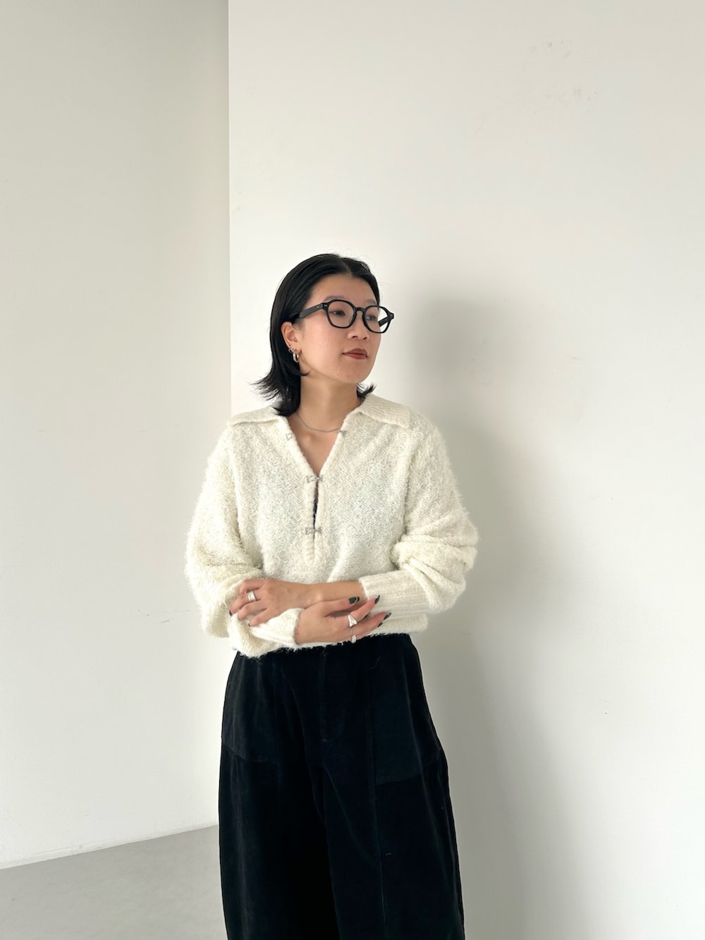 コーデュロイ素材のパンツと合わせてこの時期らしいスタイリングに!