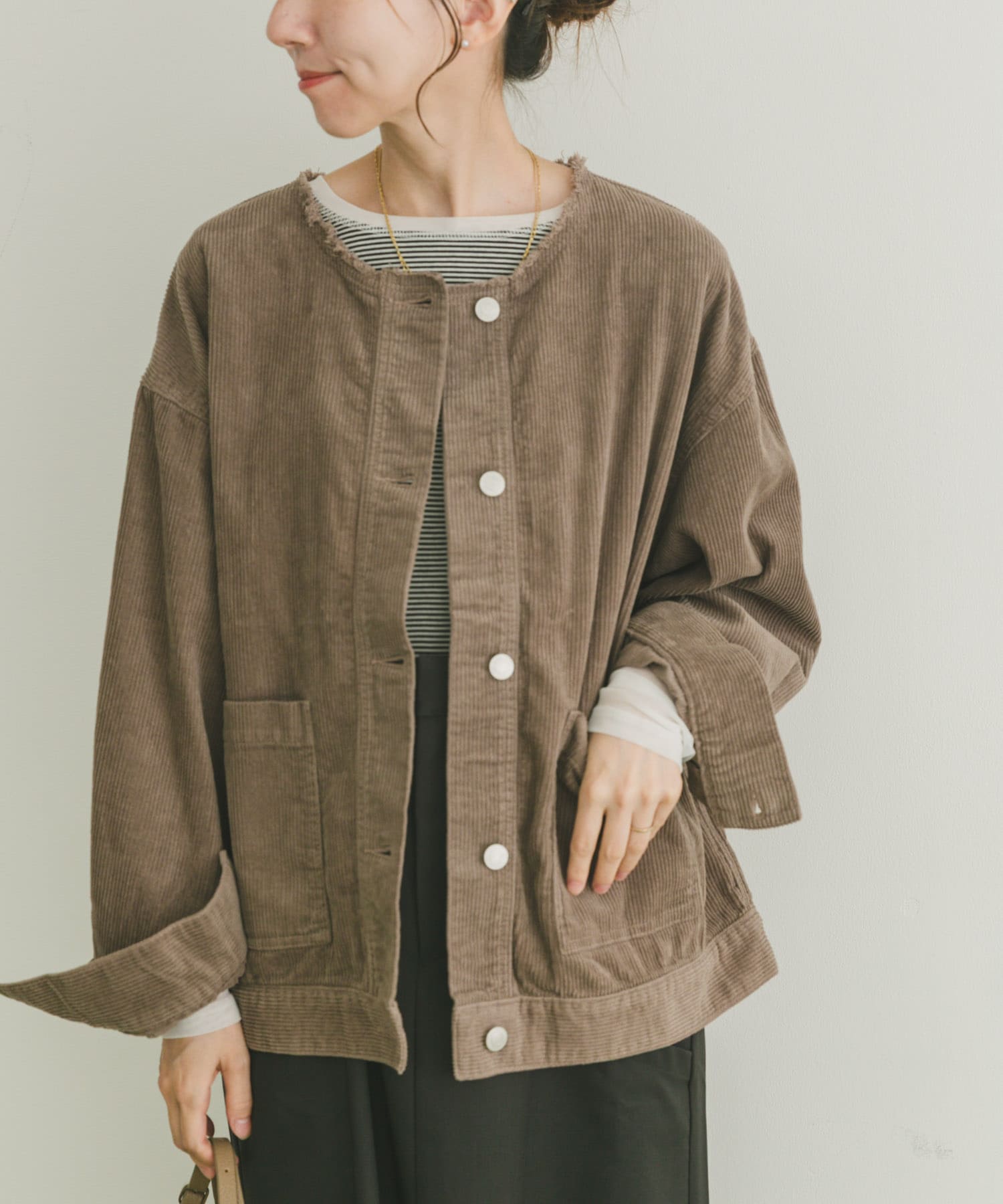 ITEMS『イージーケア』コーデュロイノーカラージャケット