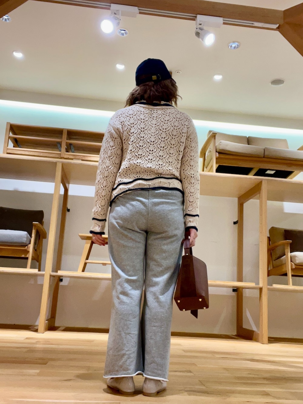 ニットはゆとりがあり着やすく、ざっくり編んでいるので中物も映えます‼︎