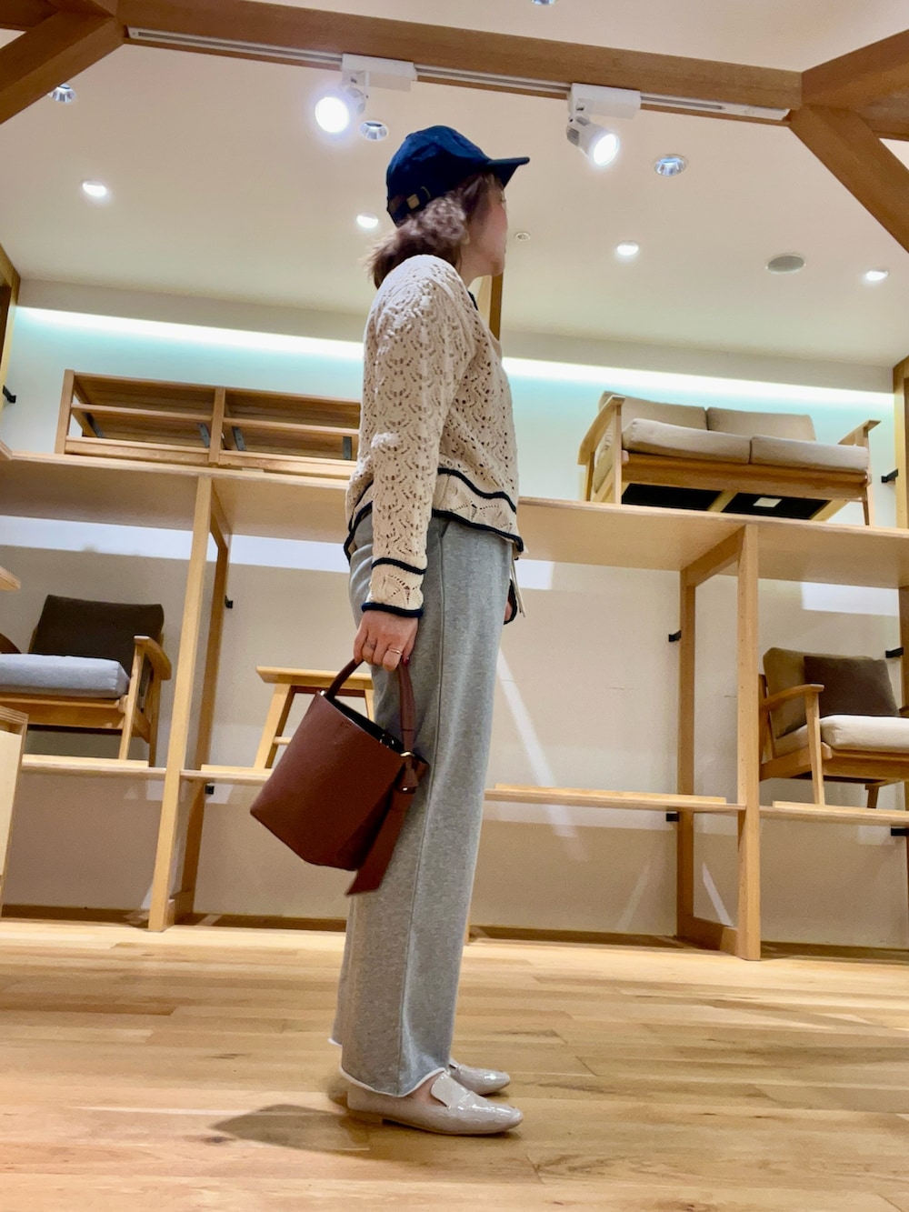 ニットカーディガンには、ピンクを差し色にし、ニットをあわせました‼︎