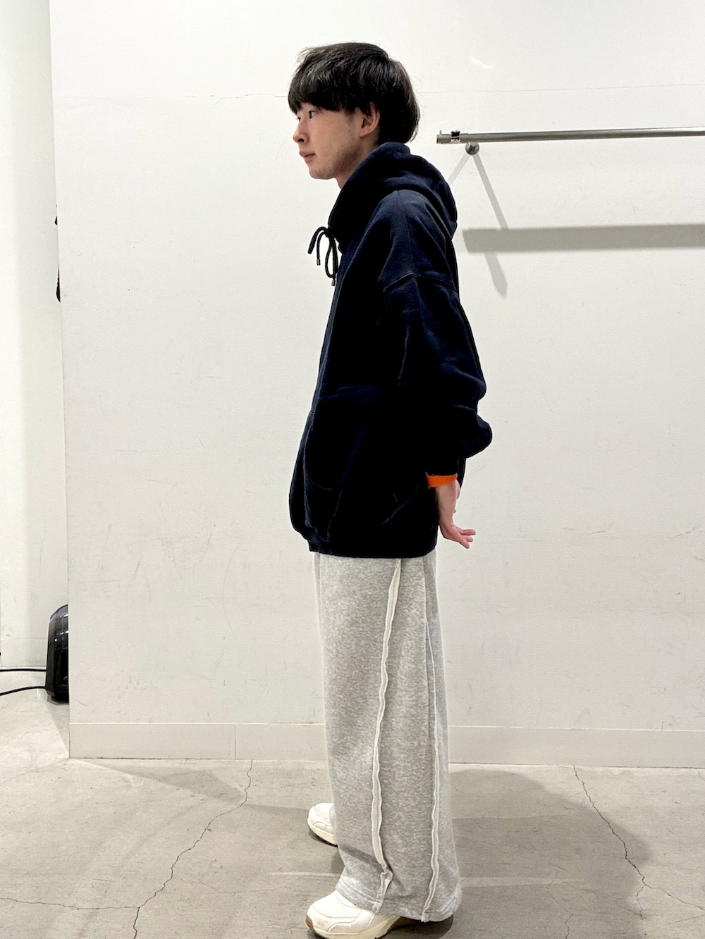 大きめのパーカーにスウェット生地のパンツを履いてみました!これからの時期にぴったりのコーデになってます!