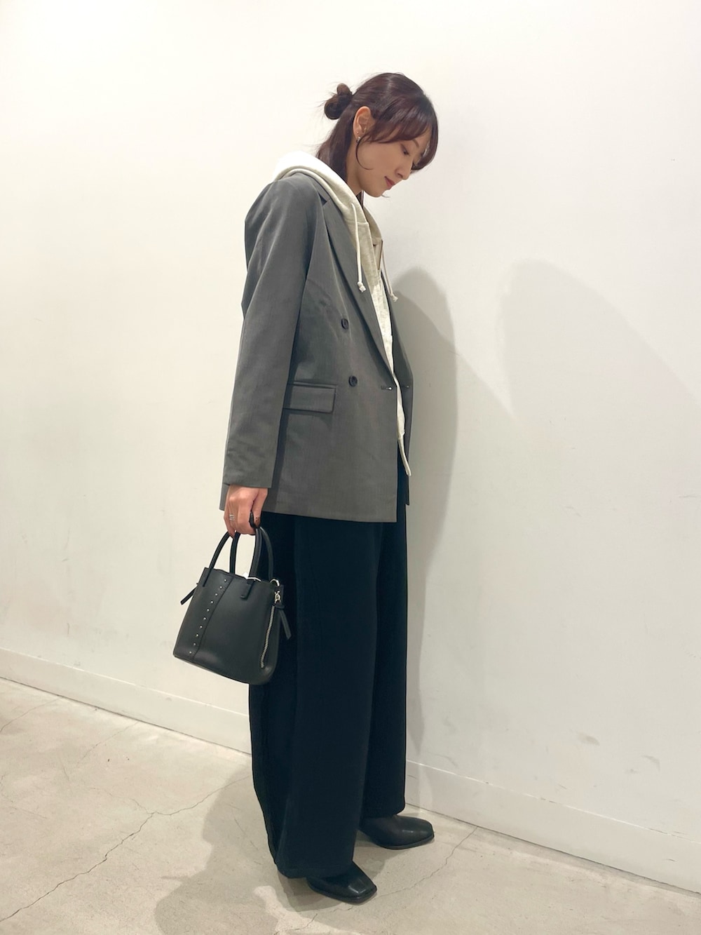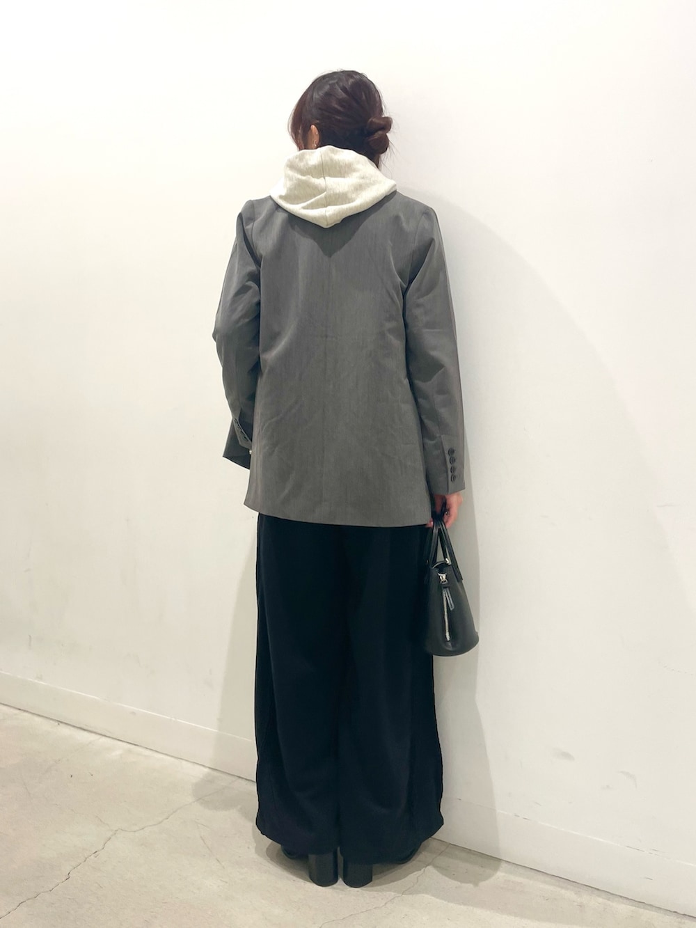 パーカーとスウェットパンツのゆるっとコーデにジャケットをプラス!