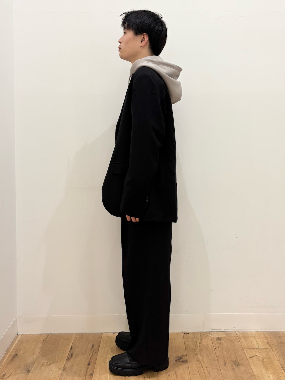 テーラードジャケットとスラックスでコーディネートに間違いないまとまりのあるセットアップ‼︎