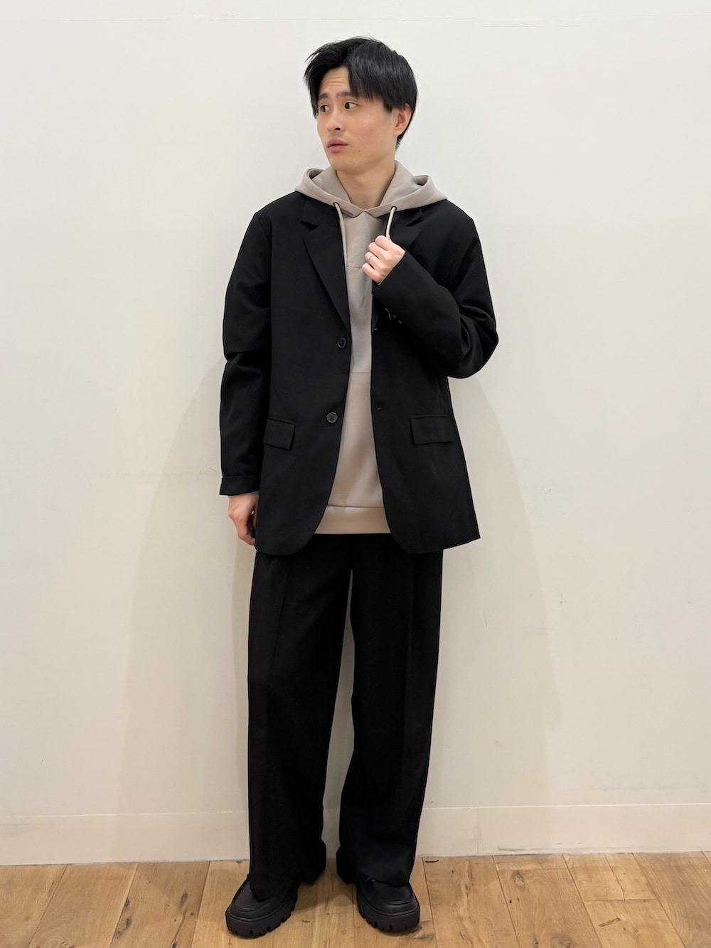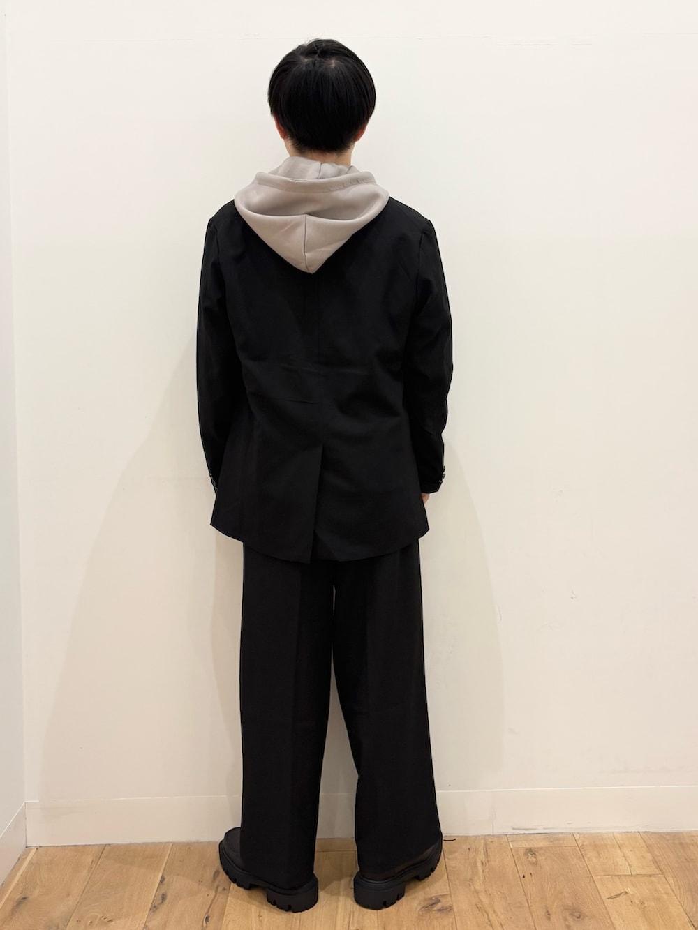 中をパーカーにすることで硬すぎず、抜け感があるコーディネートに仕上がります!