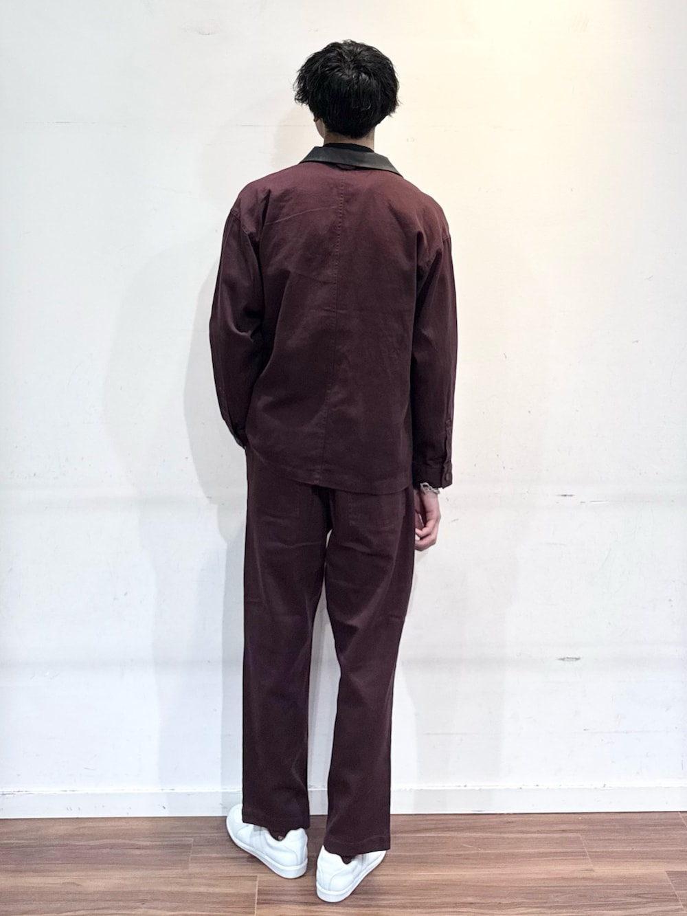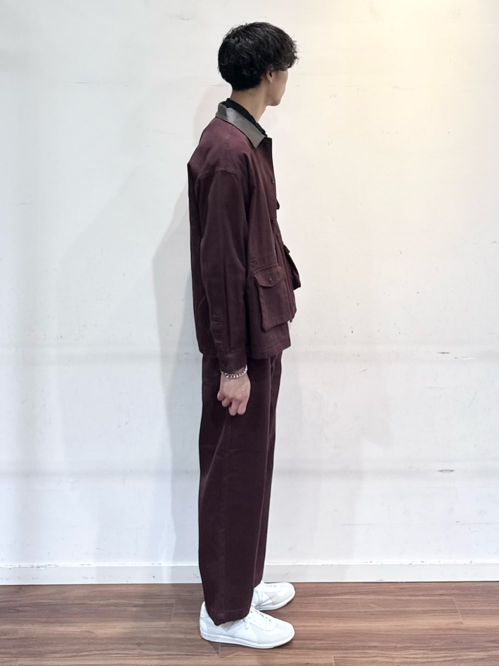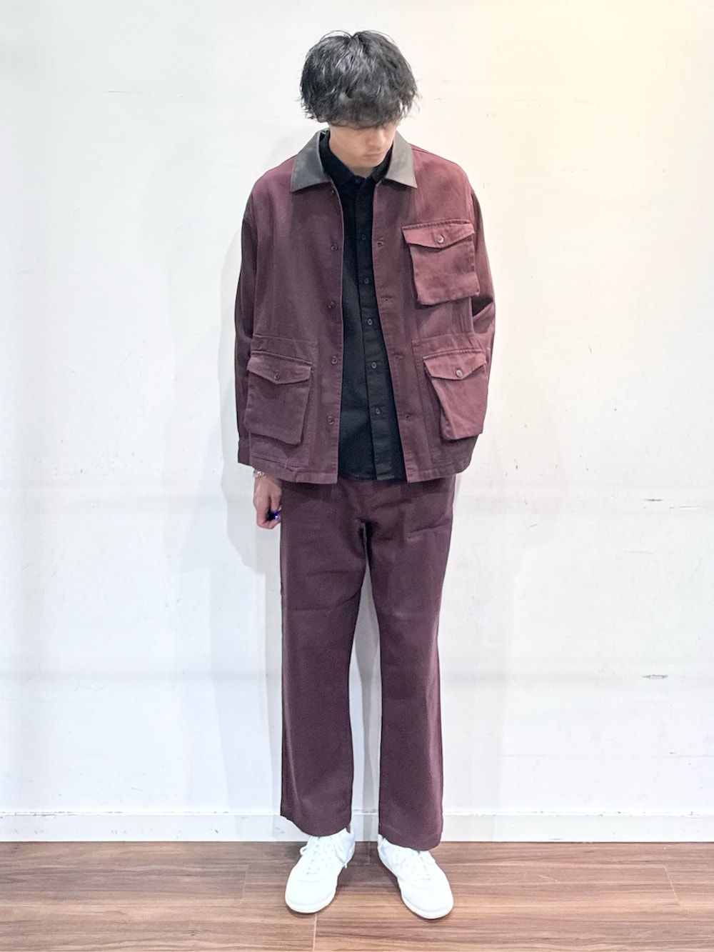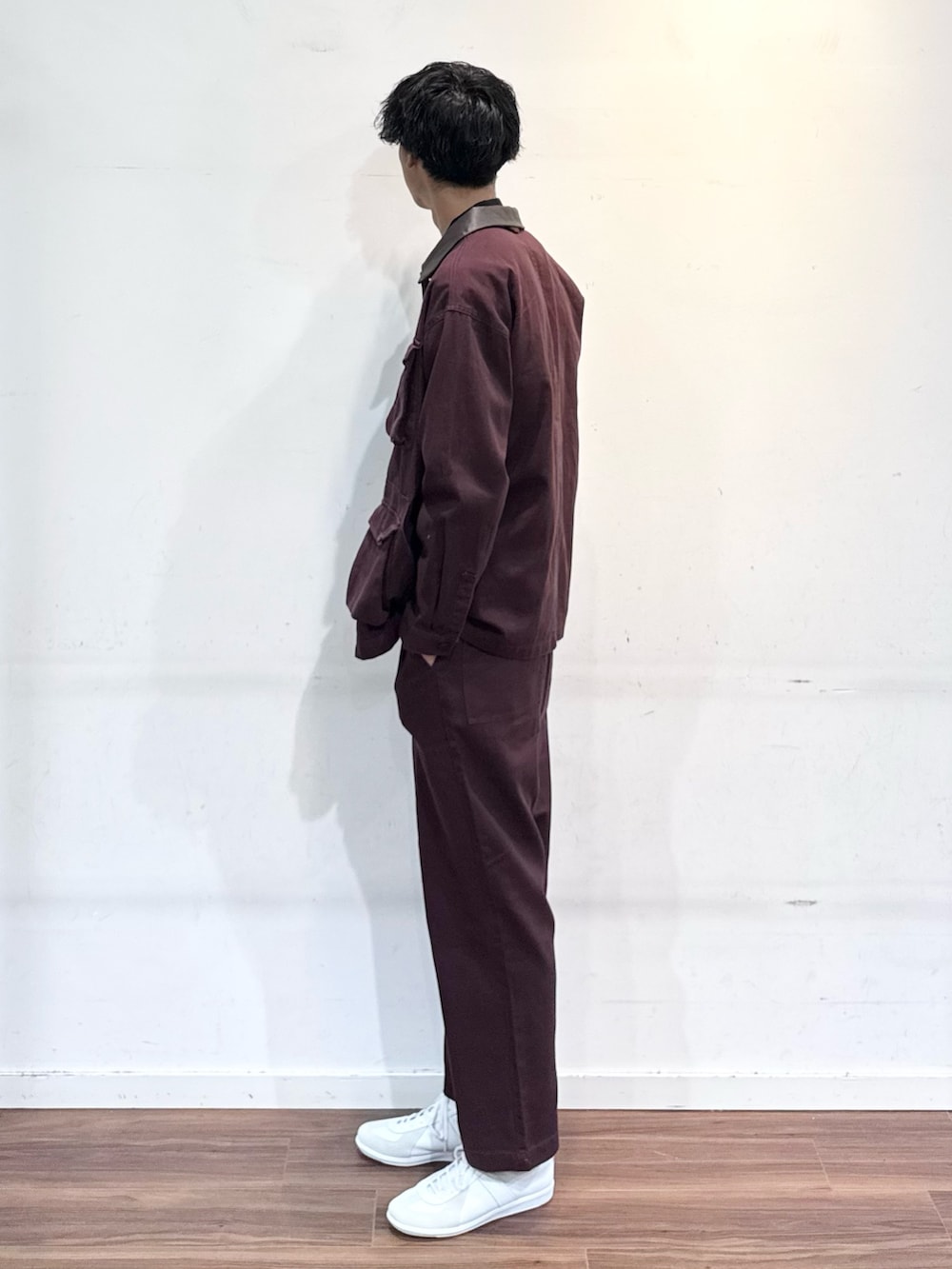 ワークスタイルっぽくしながらもインナーにシャツで締めて。