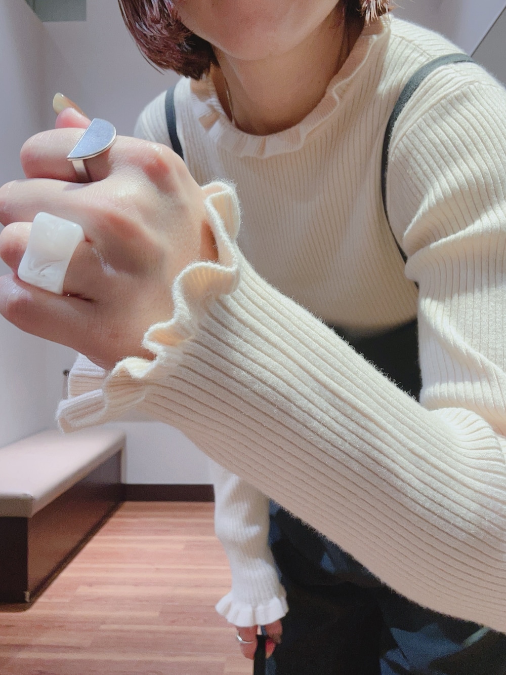 襟元と袖元のフリルがとっても可愛いです😍
