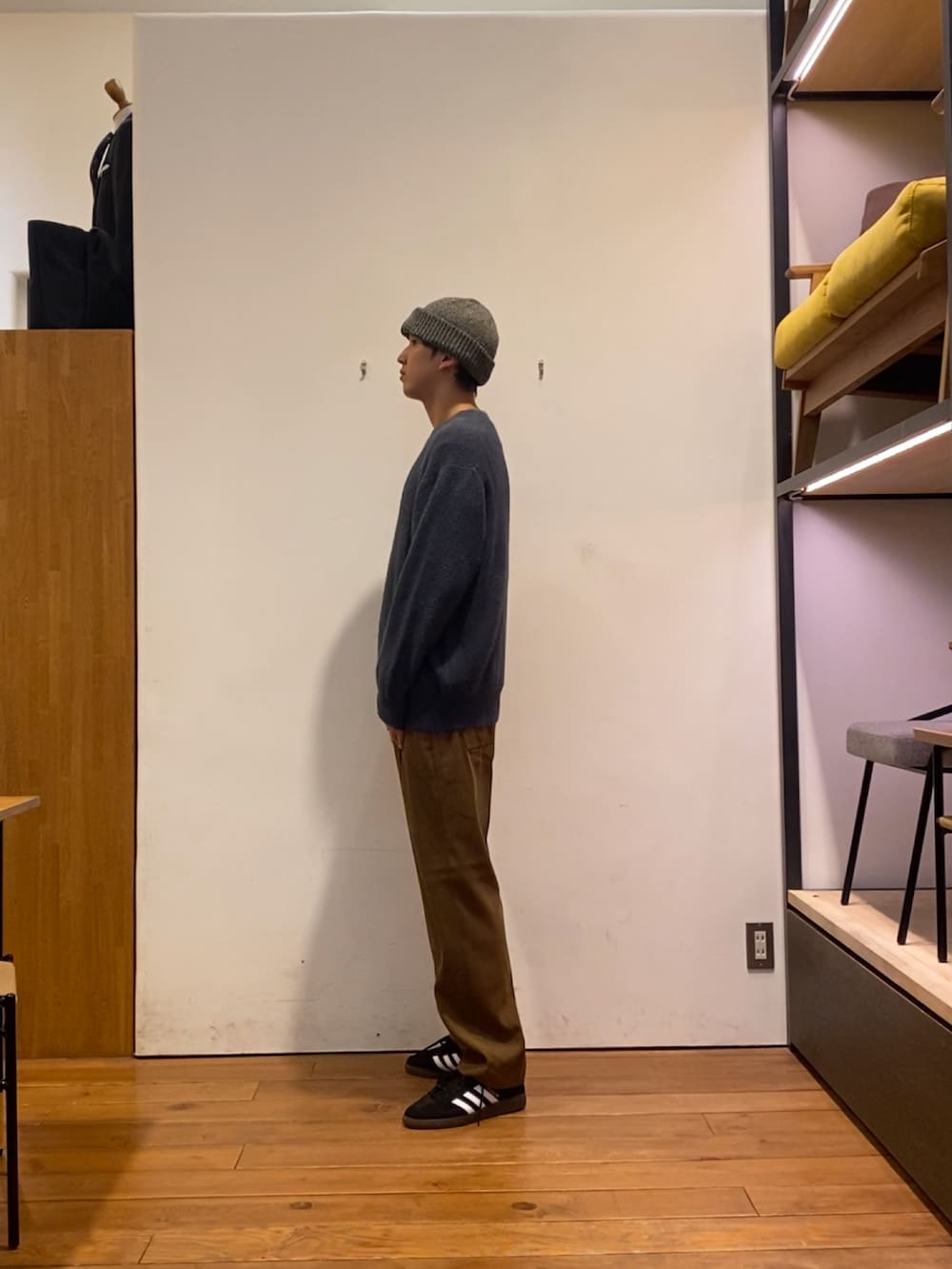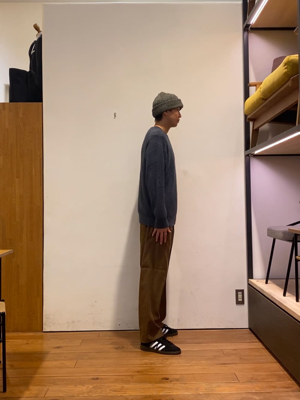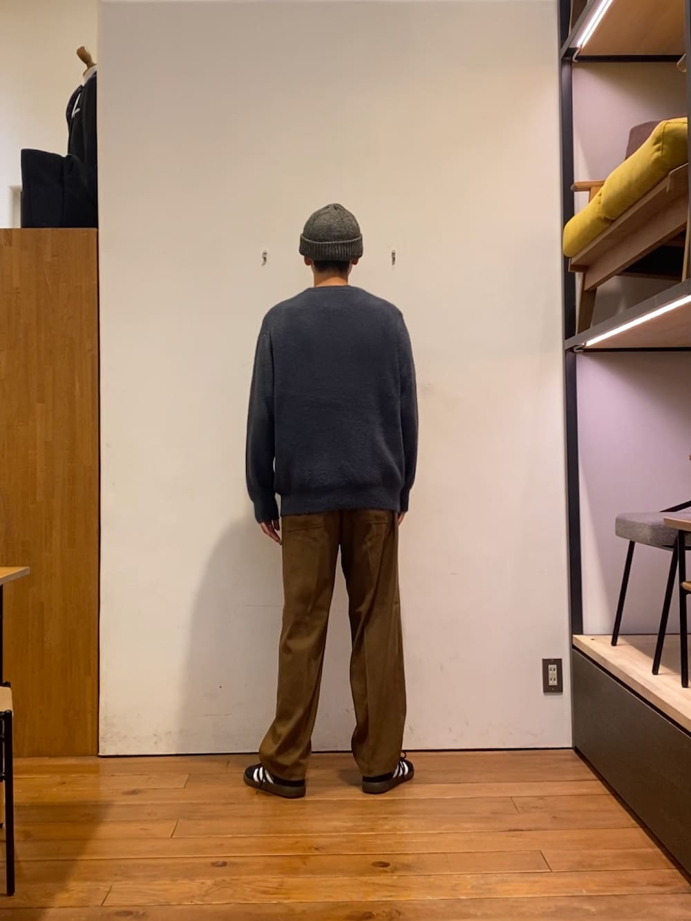 深みのあるブラウンのスエードライクなパンツと相性抜群です!
