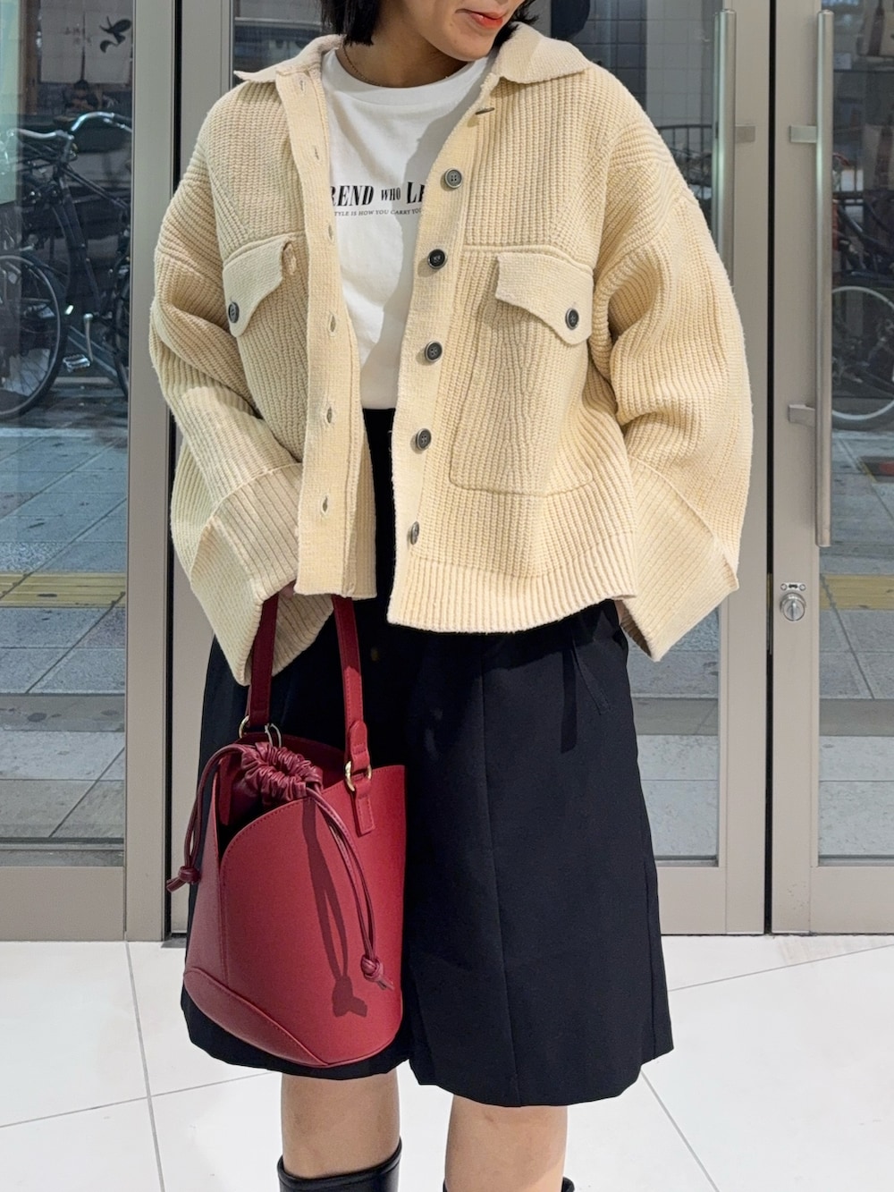 ショートパンツ×ロングブーツで一緒に合わせるのが個人的にはおすすめ😉