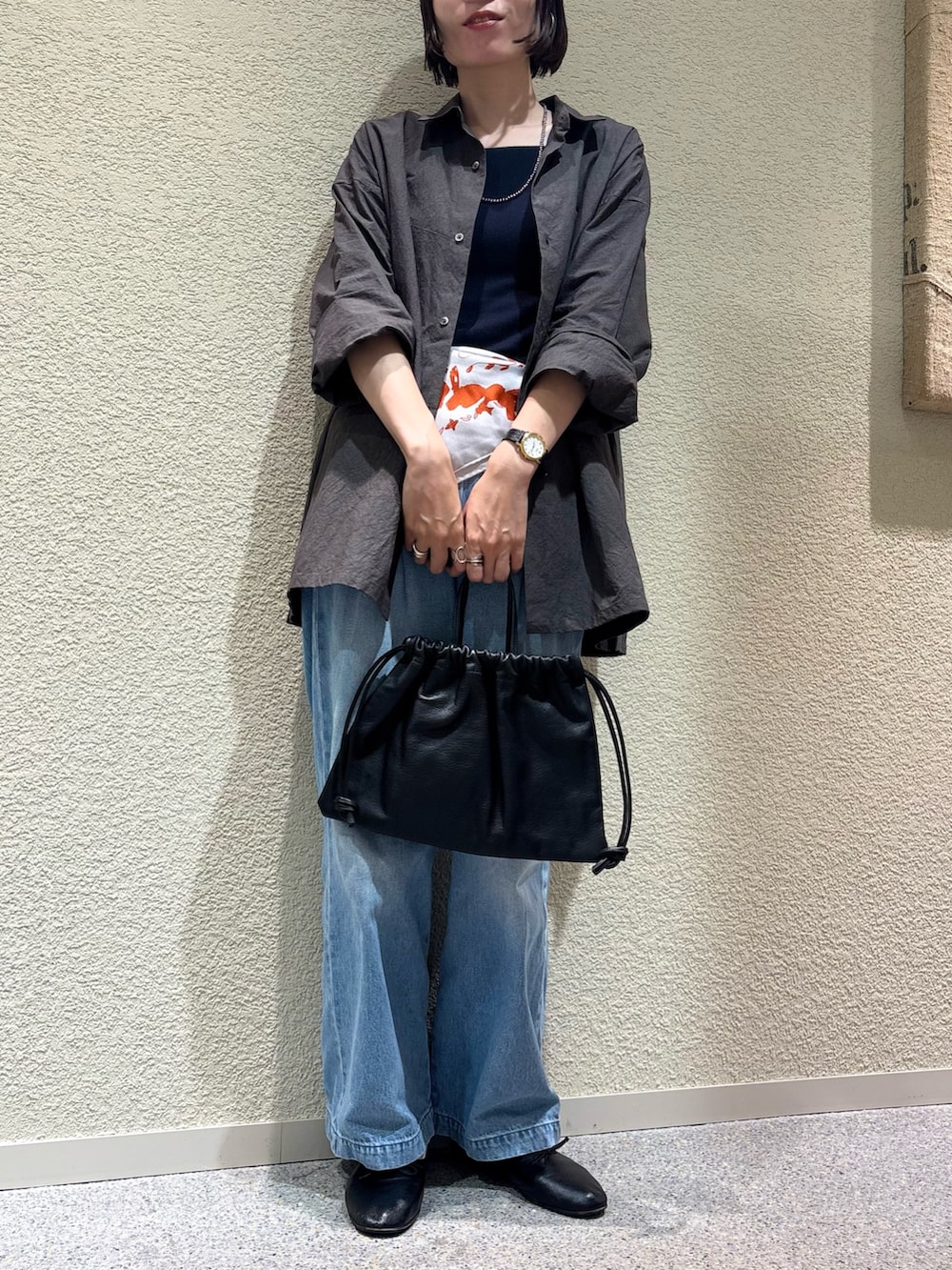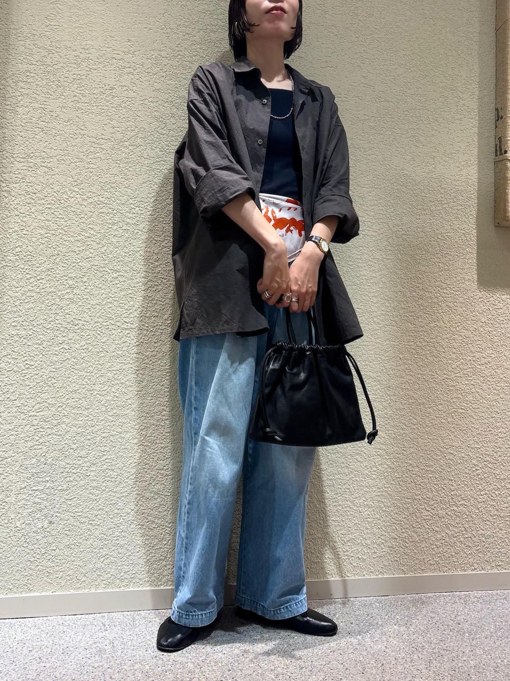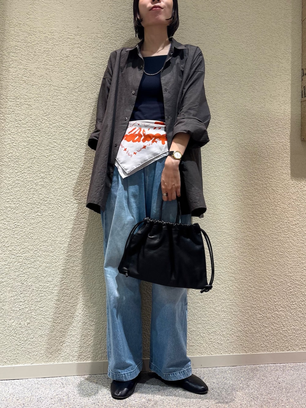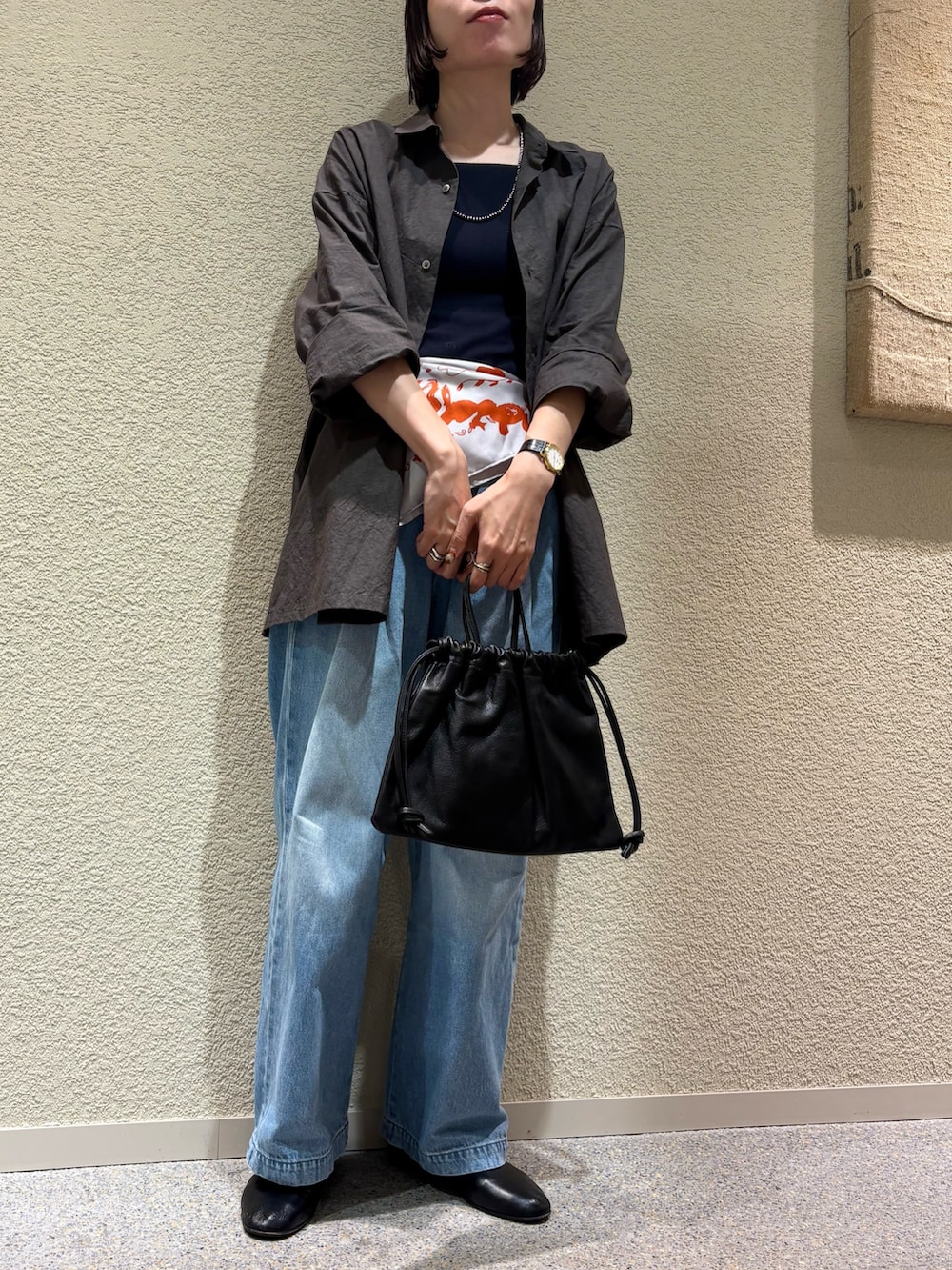 今日は羽織りで着ましたが、ボタンを閉じて着たり、インナーに薄手のタートルネックをあわせたり、ニットキャミを上から重ねたり、色んなアレンジができそうです◎