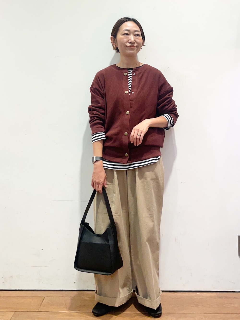カーディガンは今の季節使いやすい生地感です。