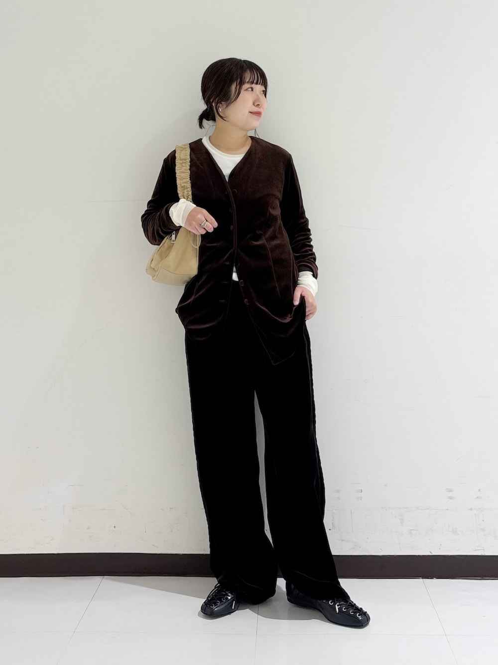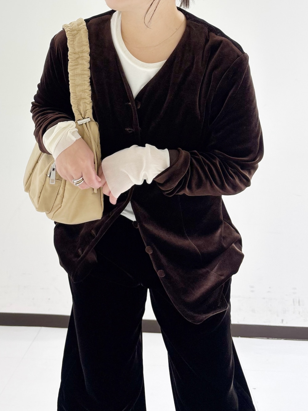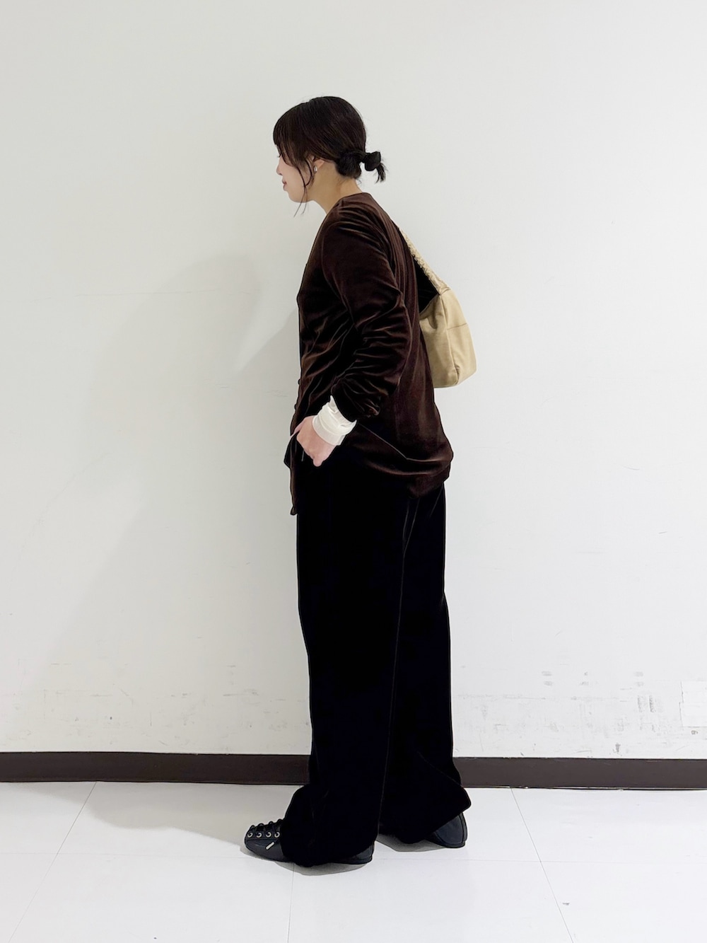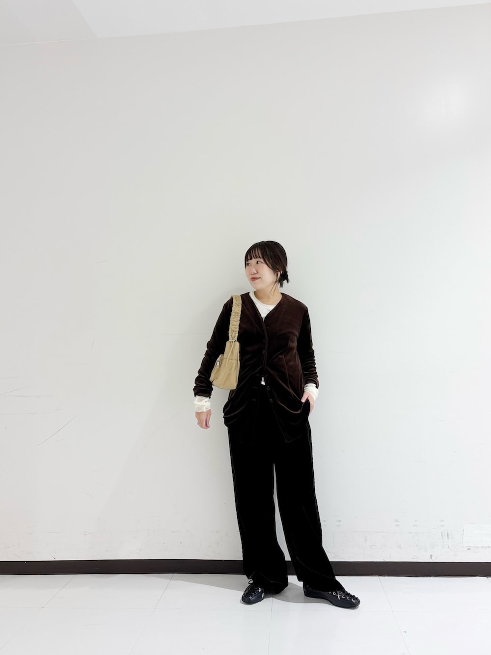 上品なイメージのあるベロアですがカットソーと合わせてカジュアルダウンさせることで日常使いしやすく、季節感が出てオススメです🙆♀️