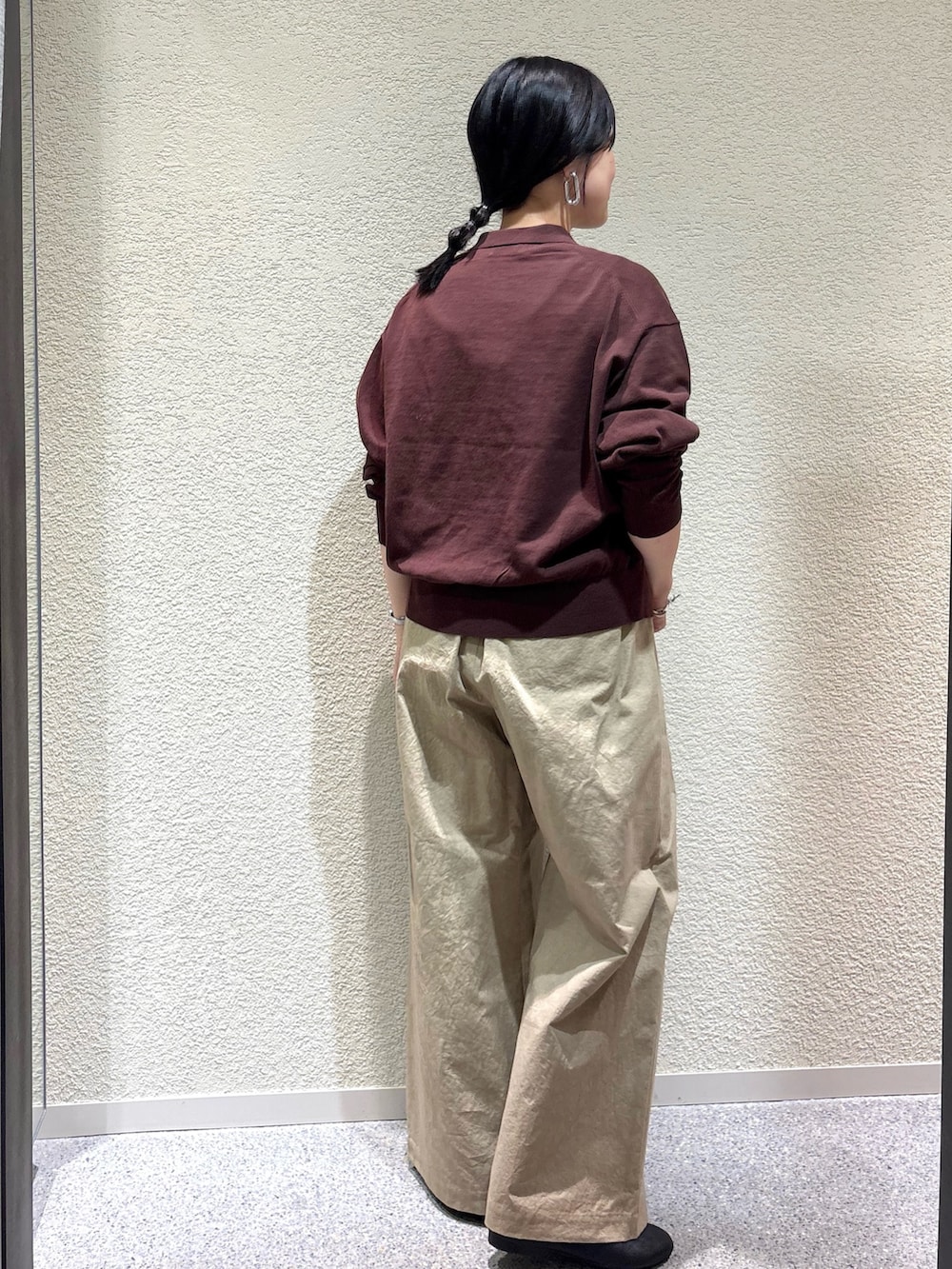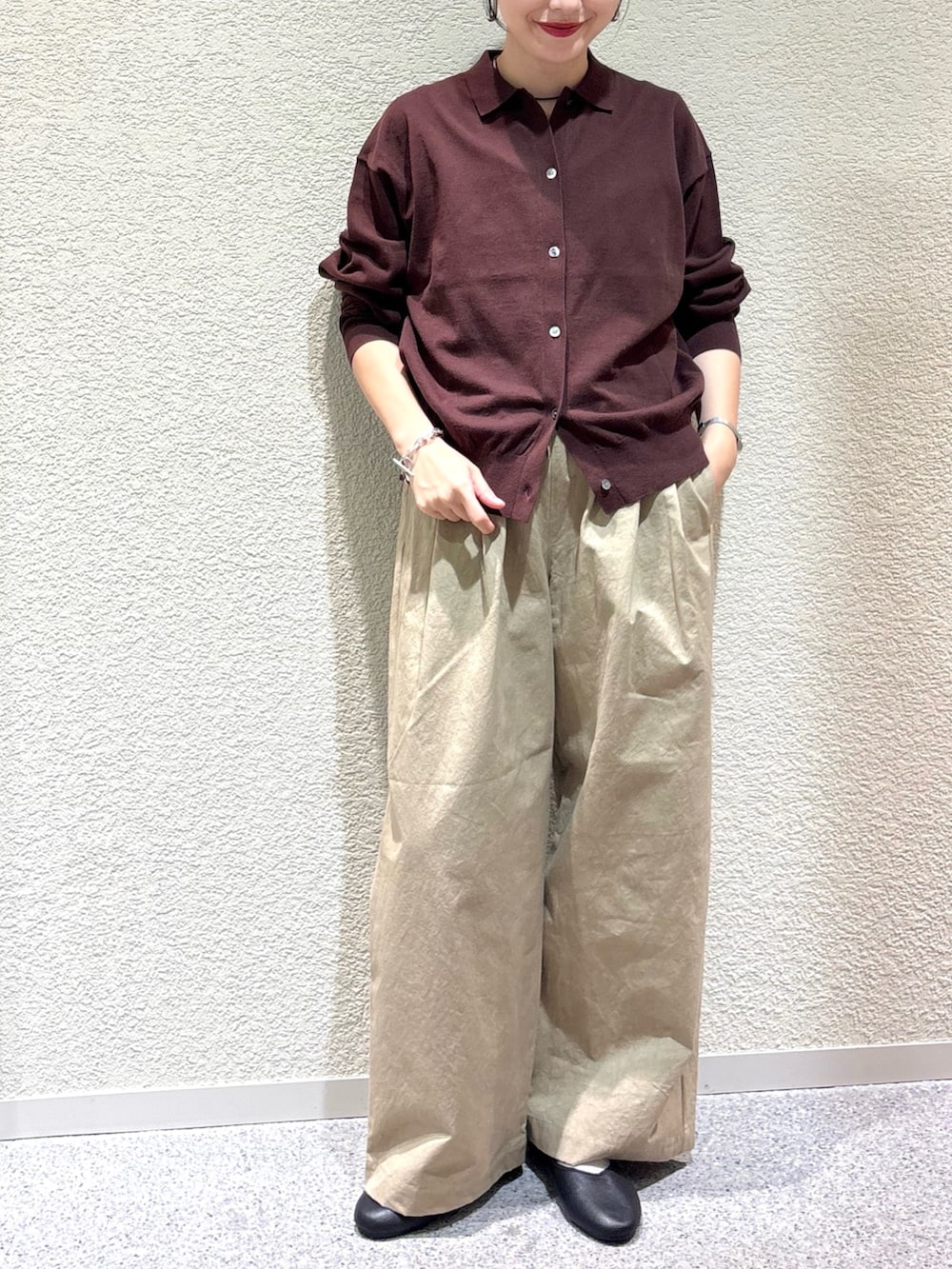 フロントに入ったタックが程よいボリュームを生み出すイージーパンツ。落ち感のある素材がシルエットを美しく見せ、リラックス感のあるはき心地も魅力。ベージュの柔らかなトーンが、ナチュラルで洗練された雰囲気を演出します。