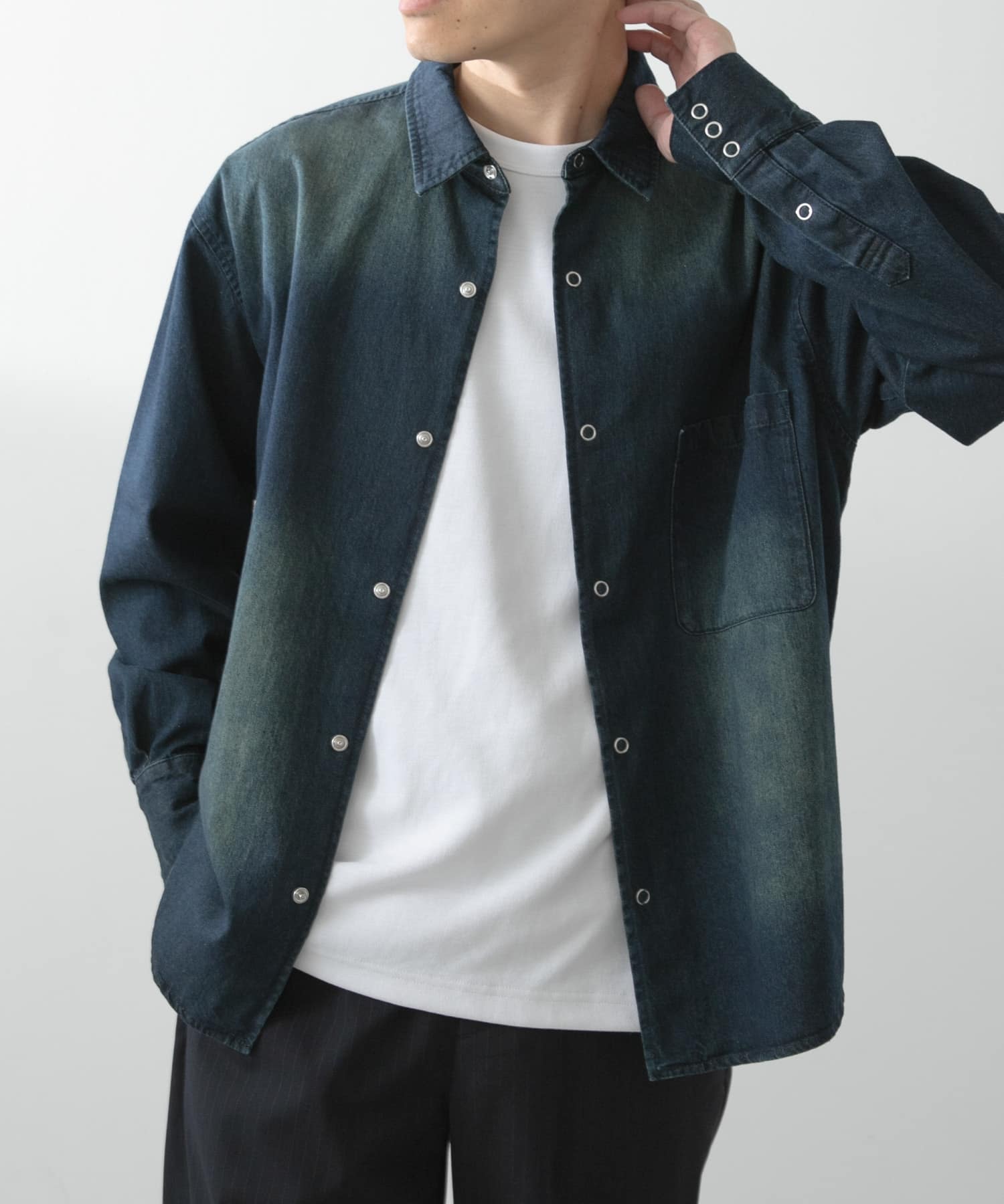 フェードデニム リングドットボタンシャツ