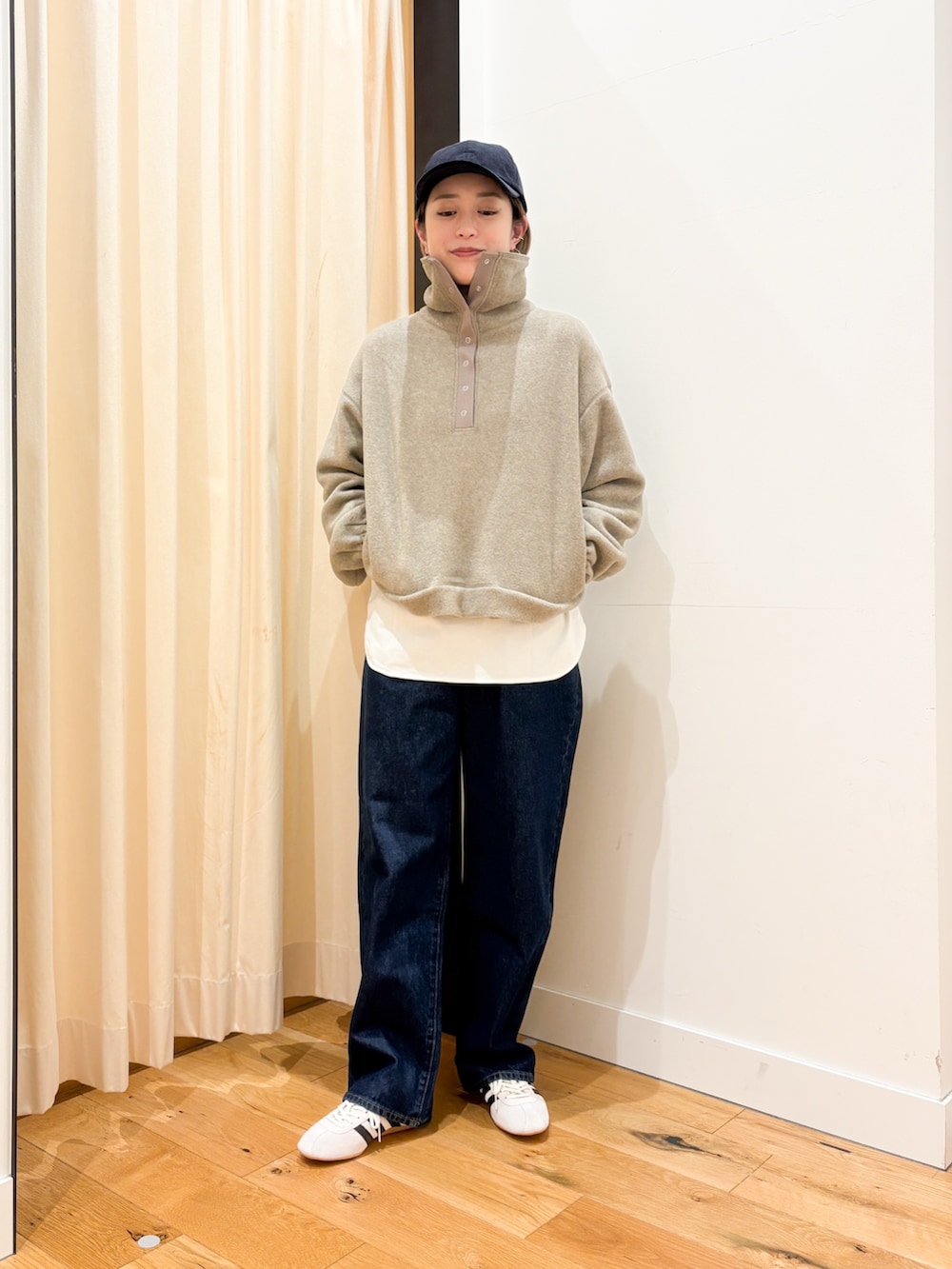 少し短めの着丈なのでカットソーをレイヤードしています。