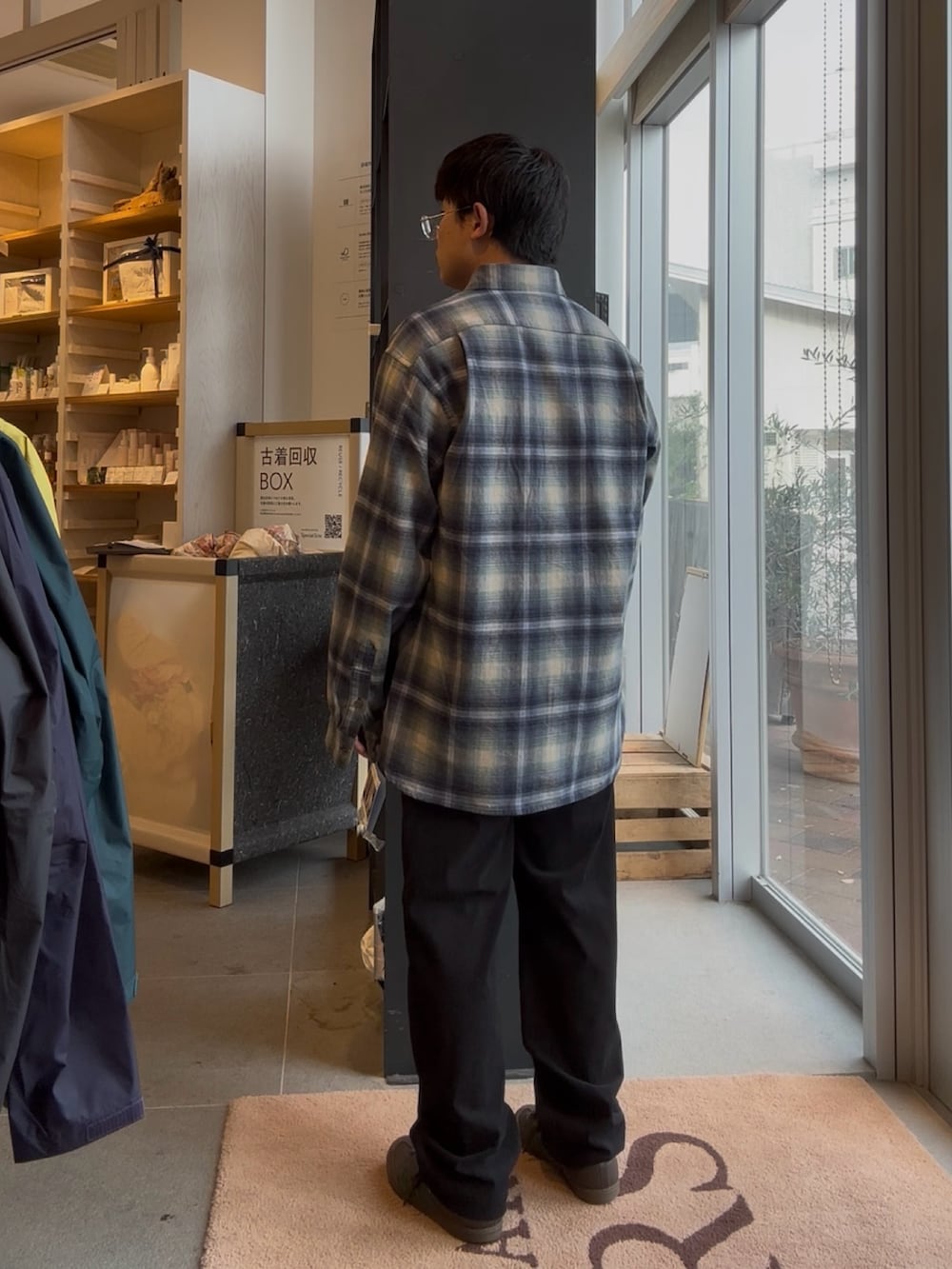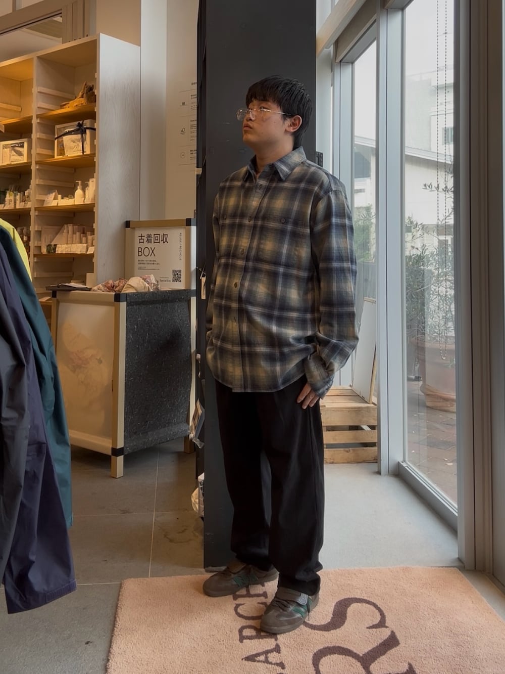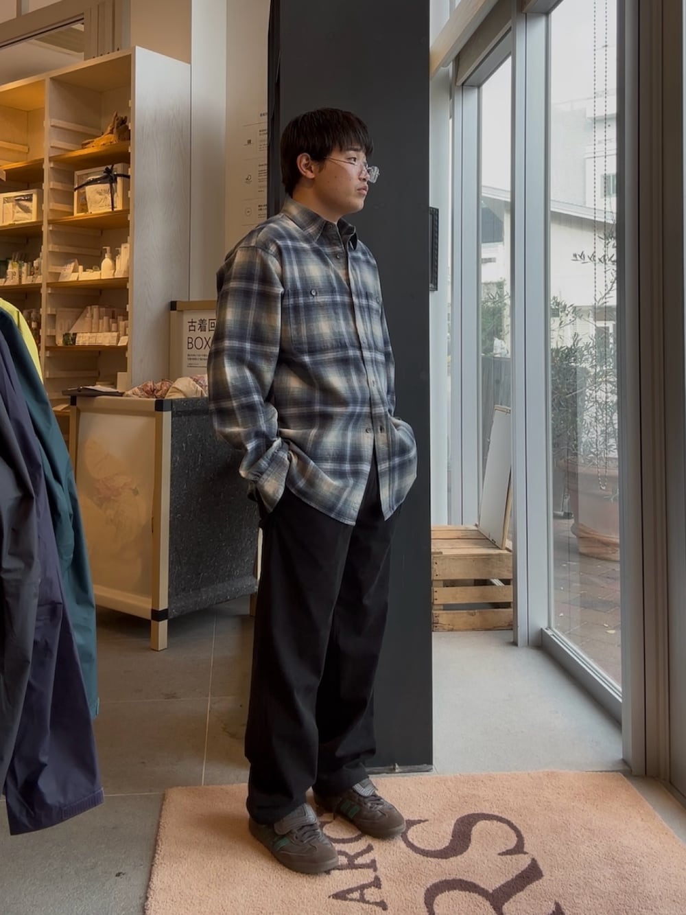 コーデュロイのパンツに大きめのシャツを合わせました。