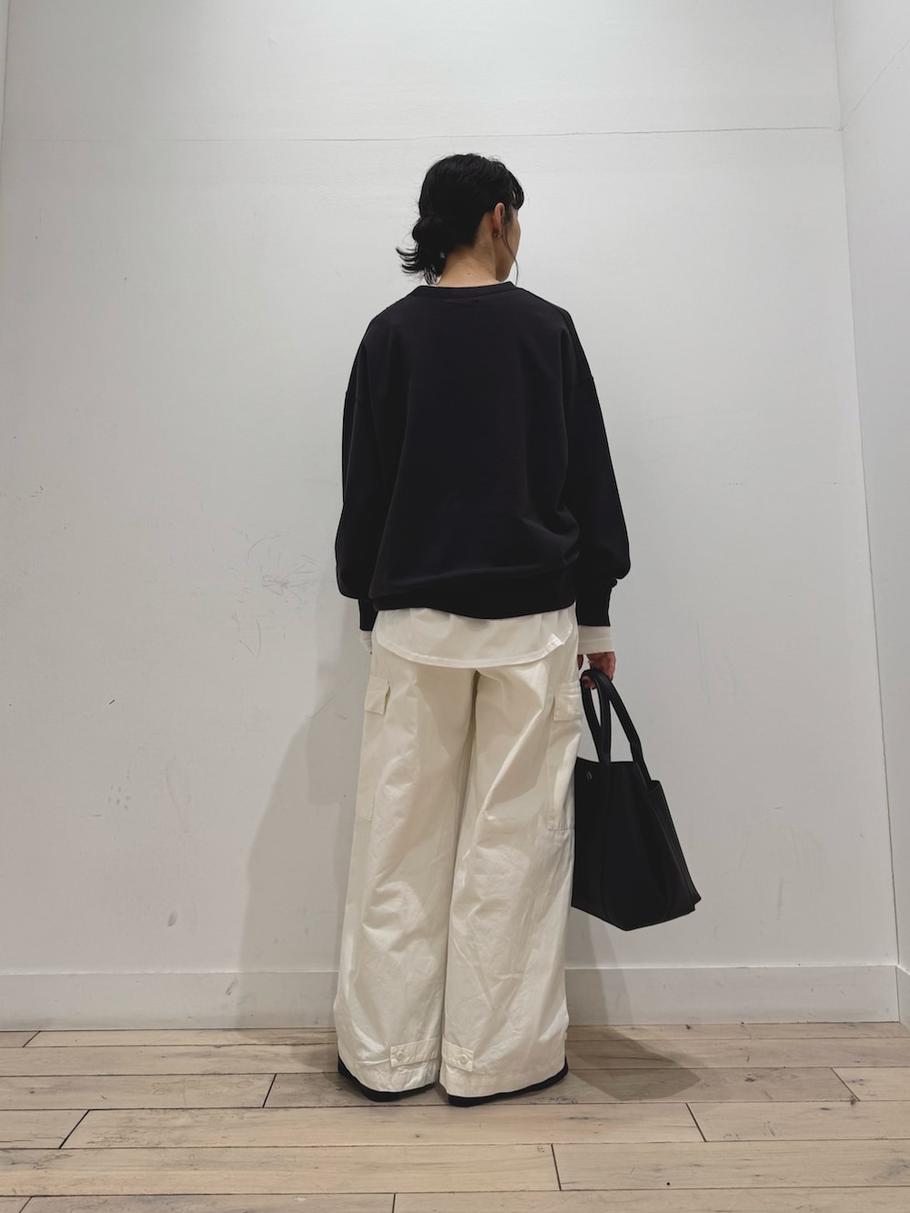 肩を落としたデザインでゆるっとしたサイズ感なので、インナーを入れてもゴワつきにくいです☺️
