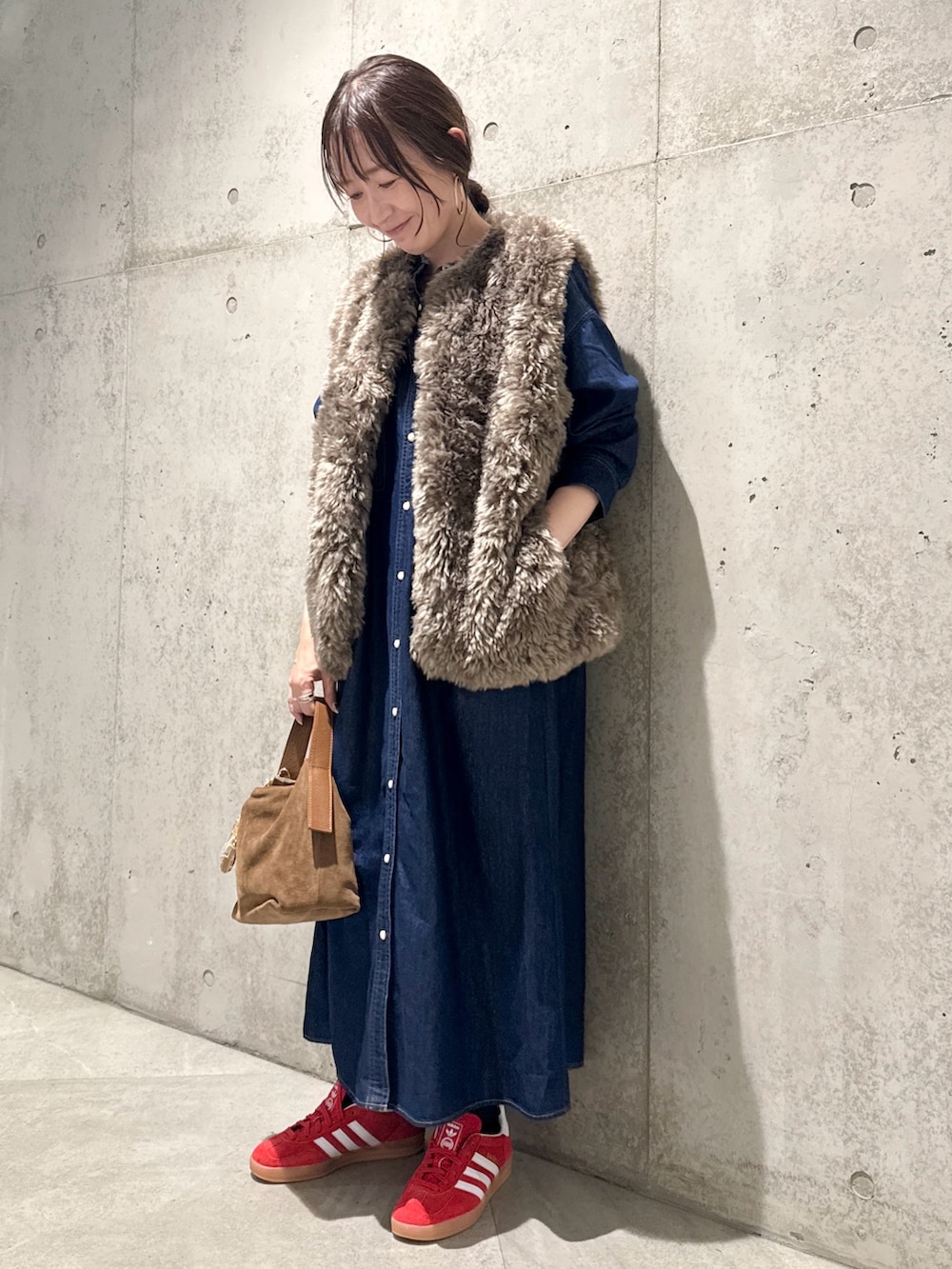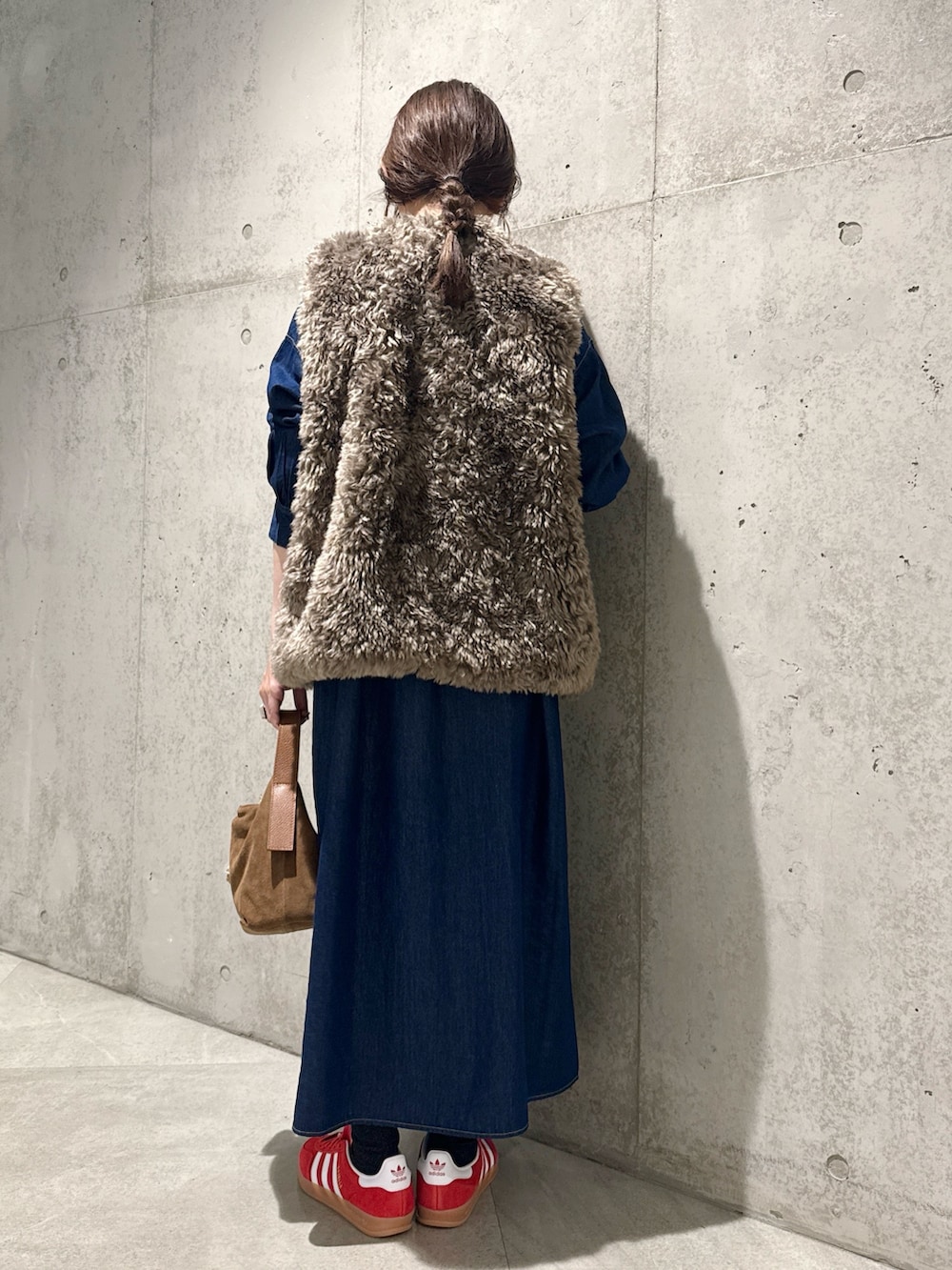 くるっとカールのかかった毛足が特徴的なノーカラーベスト。