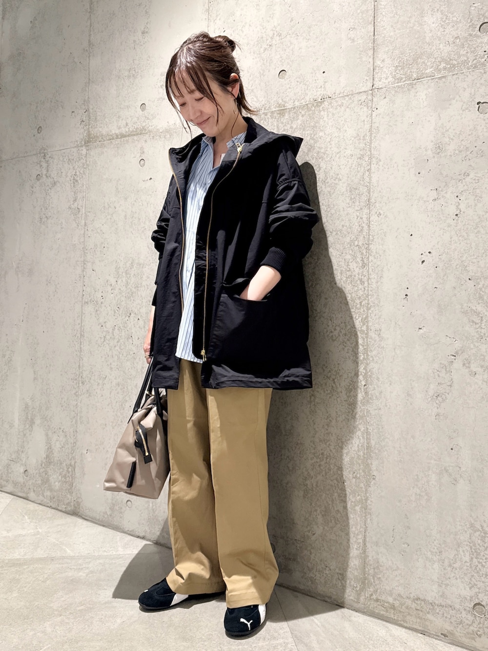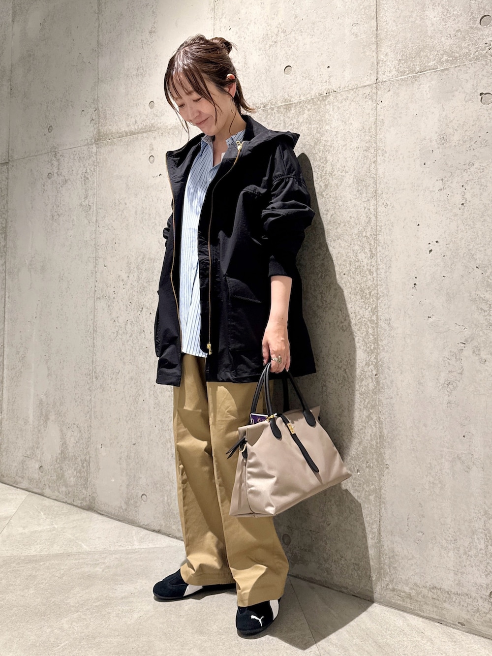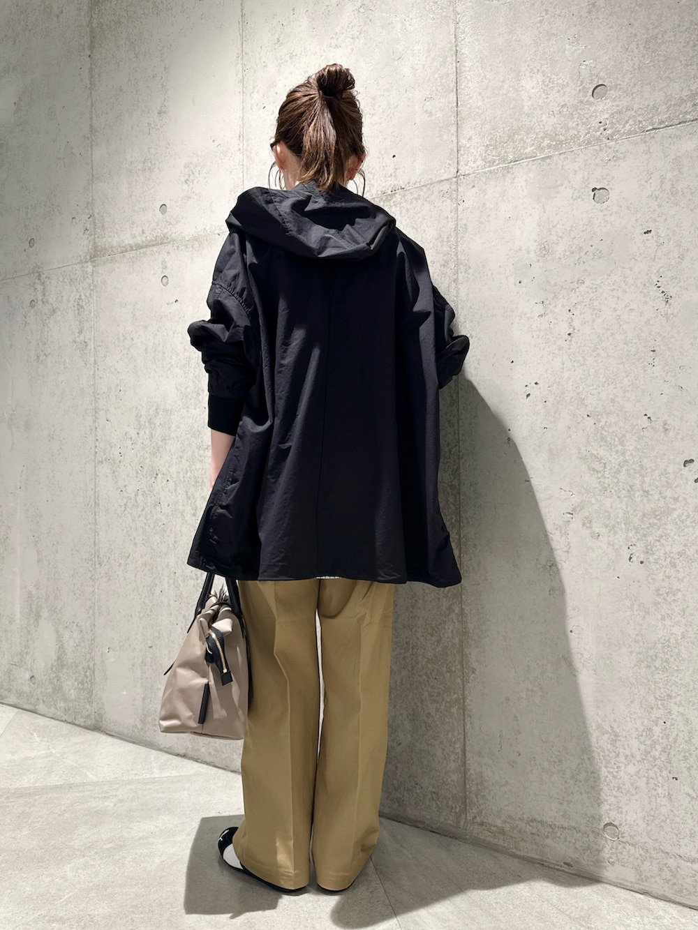 ハリ感のある素材にオーバーサイズシルエット、ゴールドのジップがカジュアルな印象にならず、こなれた雰囲気を演出してくれます。
