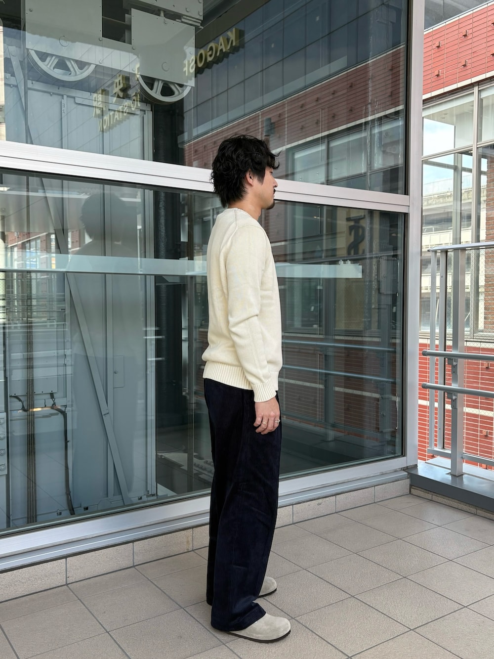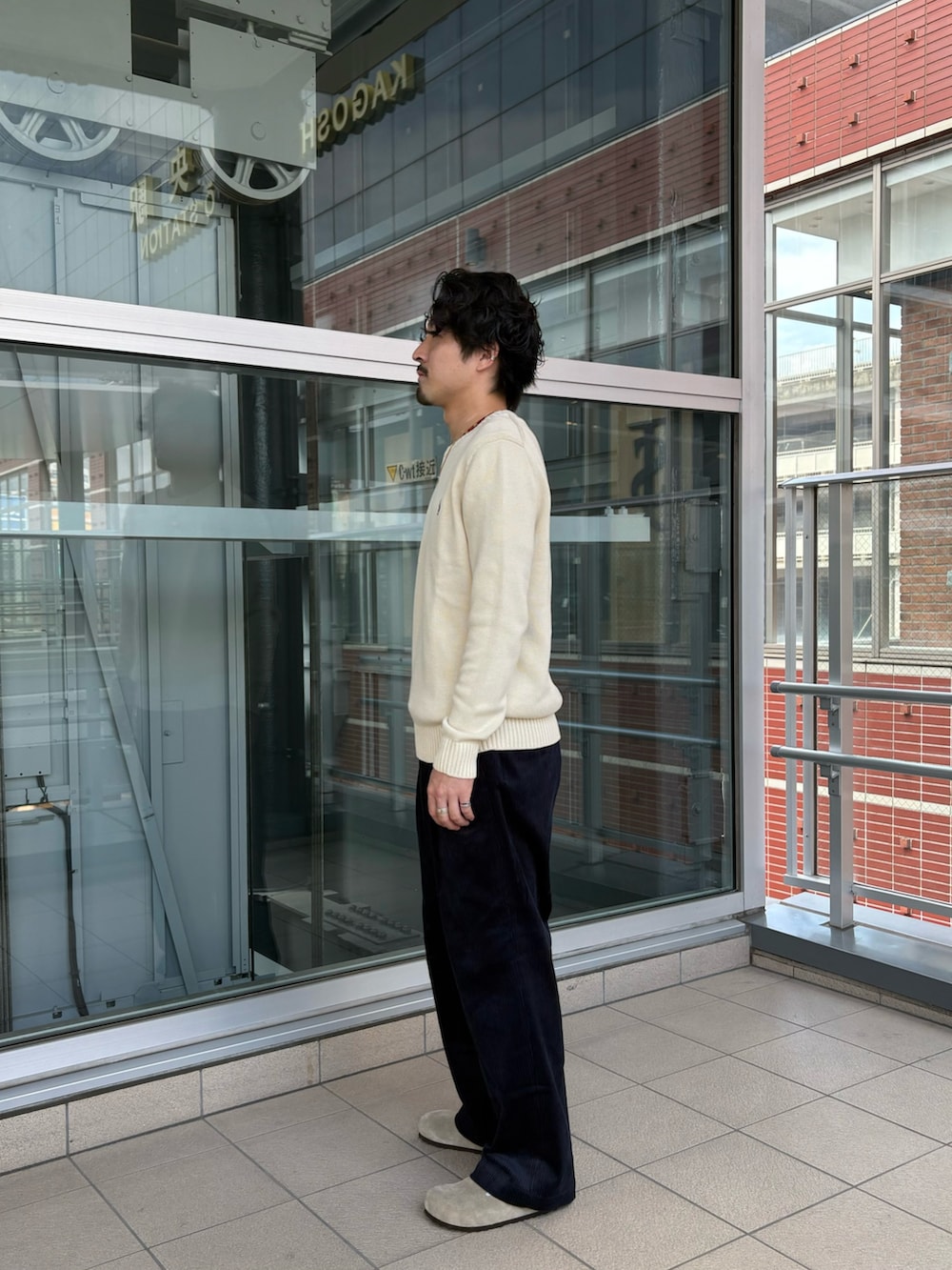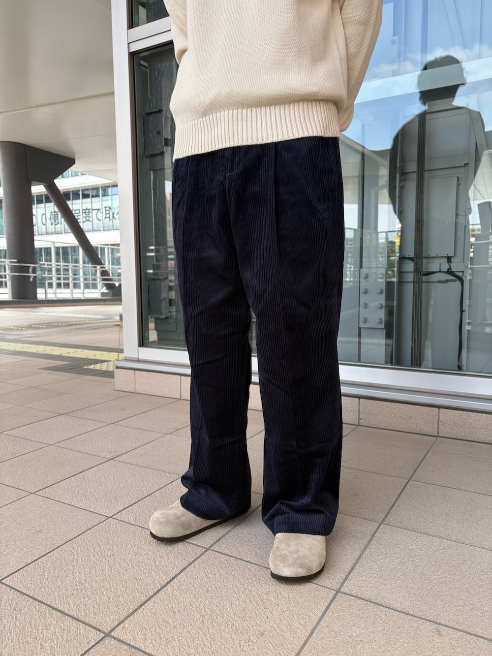 パンツにはアーバンリサーチオリジナルのコーデュロイパンツ、足元にスウェードのビルケンで季節感意識しました。