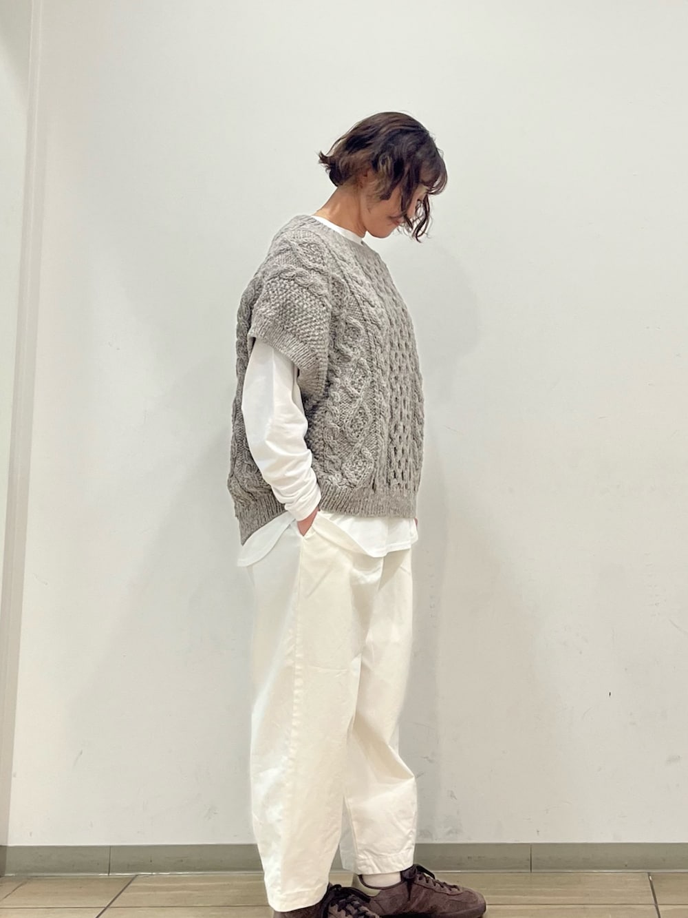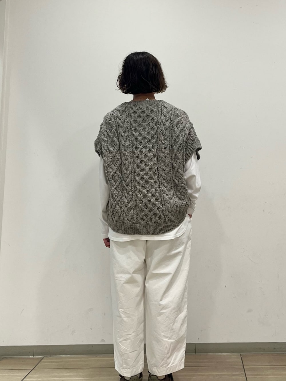 ペルーのワイドベストはレイヤードしてもボリュームが出過ぎず着て頂ける所がポイントです。