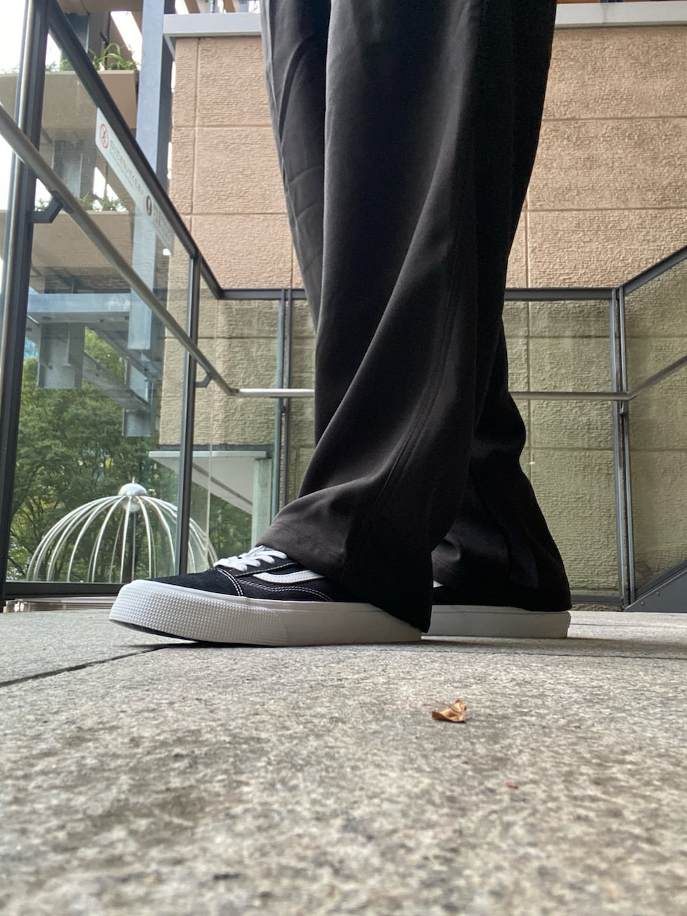 シルエットはワンタック入りで、ウエストからヒップにかけて程よくゆとりを持たせたテーパードライン。
