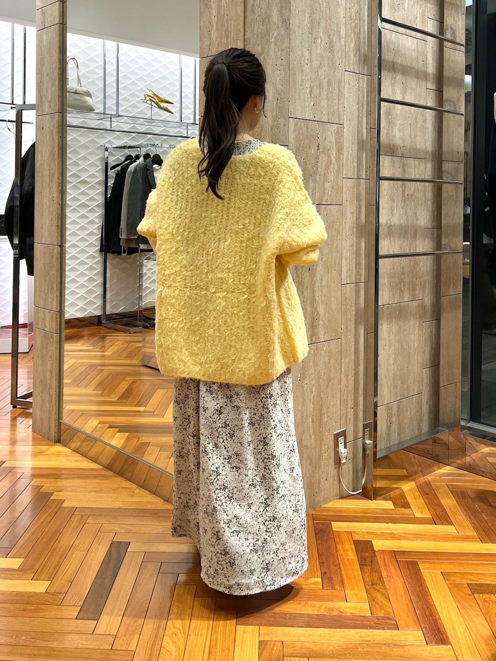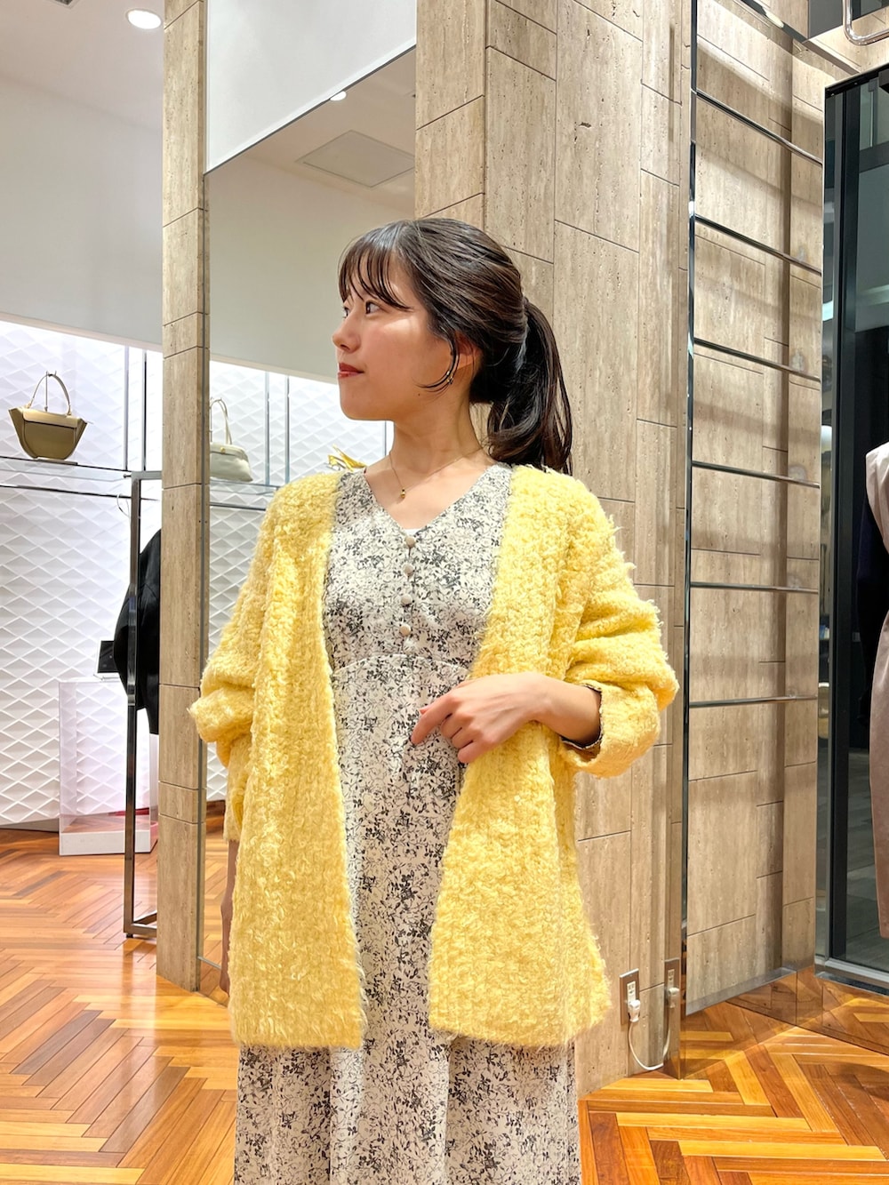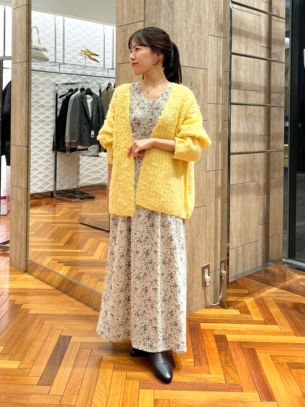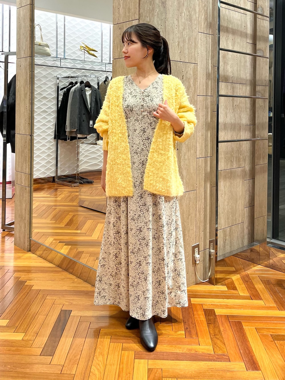 ニットカーディガンを合わせて、大人可愛いコーデに!デートやおでかけにぴったりなデザインです!♪